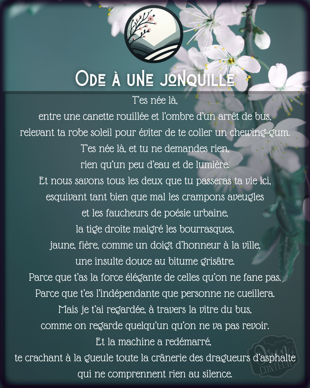 J'ai beaucoup aimé et j'ai visualisé les moindres détails en lisant. Bravo pour cette belle ode 😊
