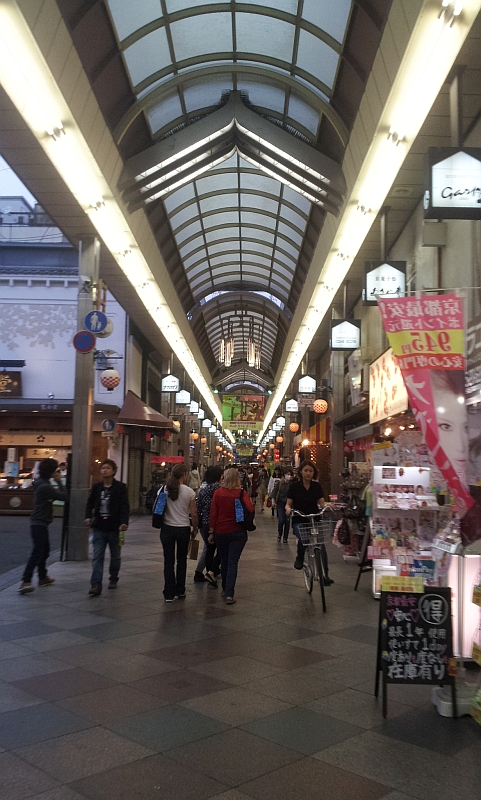 Je prends le bus pour le quartier de Pontocho et les galeries commerciales. Très animé. Ça me rappelle Osaka. Je trouve internet au Starbuck coffee (celui de la veille) où je bois un thé matcha au lait de soja... J'essaierai une deuxième fois. Un peu surprenant.