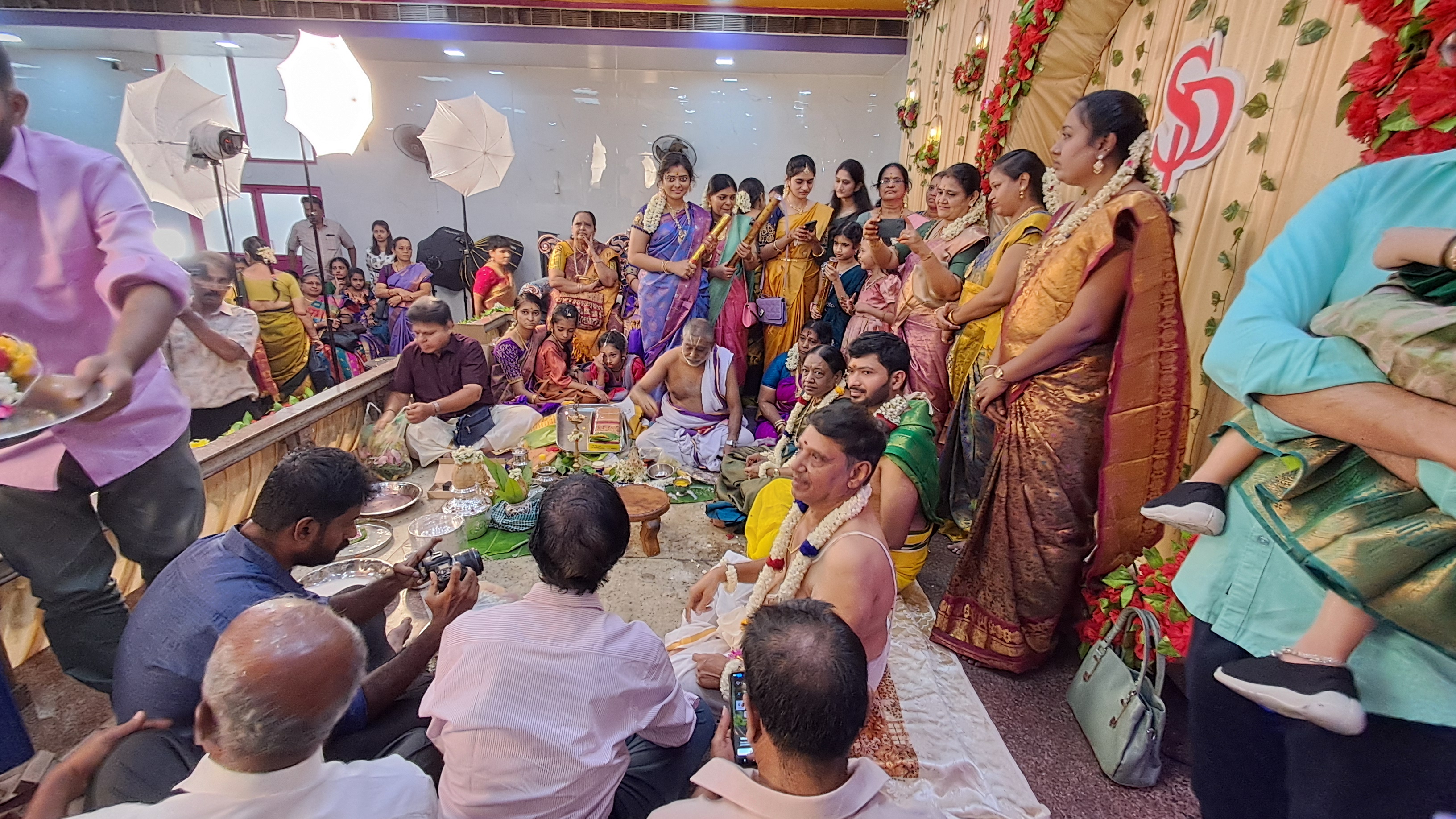 L'occasion de nous tous de nous retrouver dans le mahal du futur marié et de rencontrer la famille de Siva, ses amis, puis les futurs époux qui arrivent en sari pour Prianka, en costume pour Siva, et de prendre ainsi nos premiers clichés !