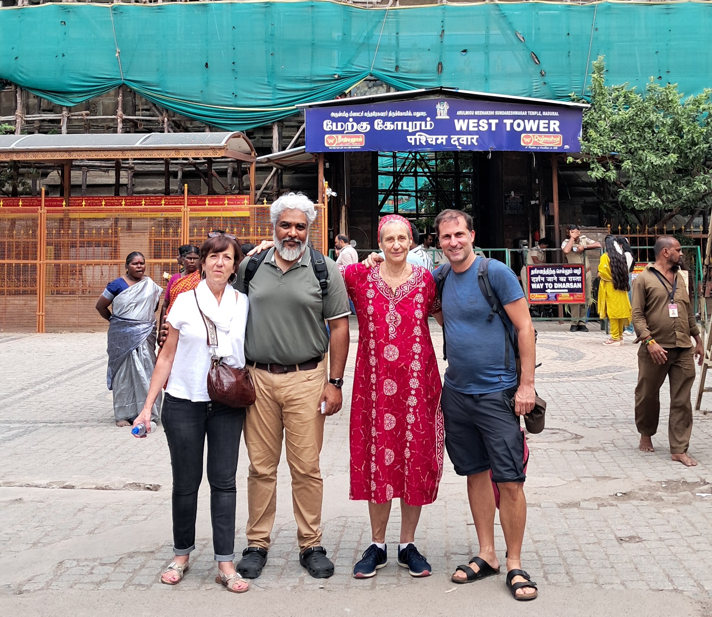 Puis arrivée à Madurai dans la perspective du futur mariage de Siva (prononcez Shiva) et Prianka auquel je vais bientôt assister ! Je retrouve là ma tante Brigitte grâce à qui j'ai été convié à l'heureux événement et que je n'ai pas vu depuis plusieurs années, ainsi que Magalie, Yves-Michel, Catherine Giulio et Clara, amis français du marié et de ma tante, et ses amis indiens Milan et Bhuvan ayant étudié avec lui à Toulouse.
