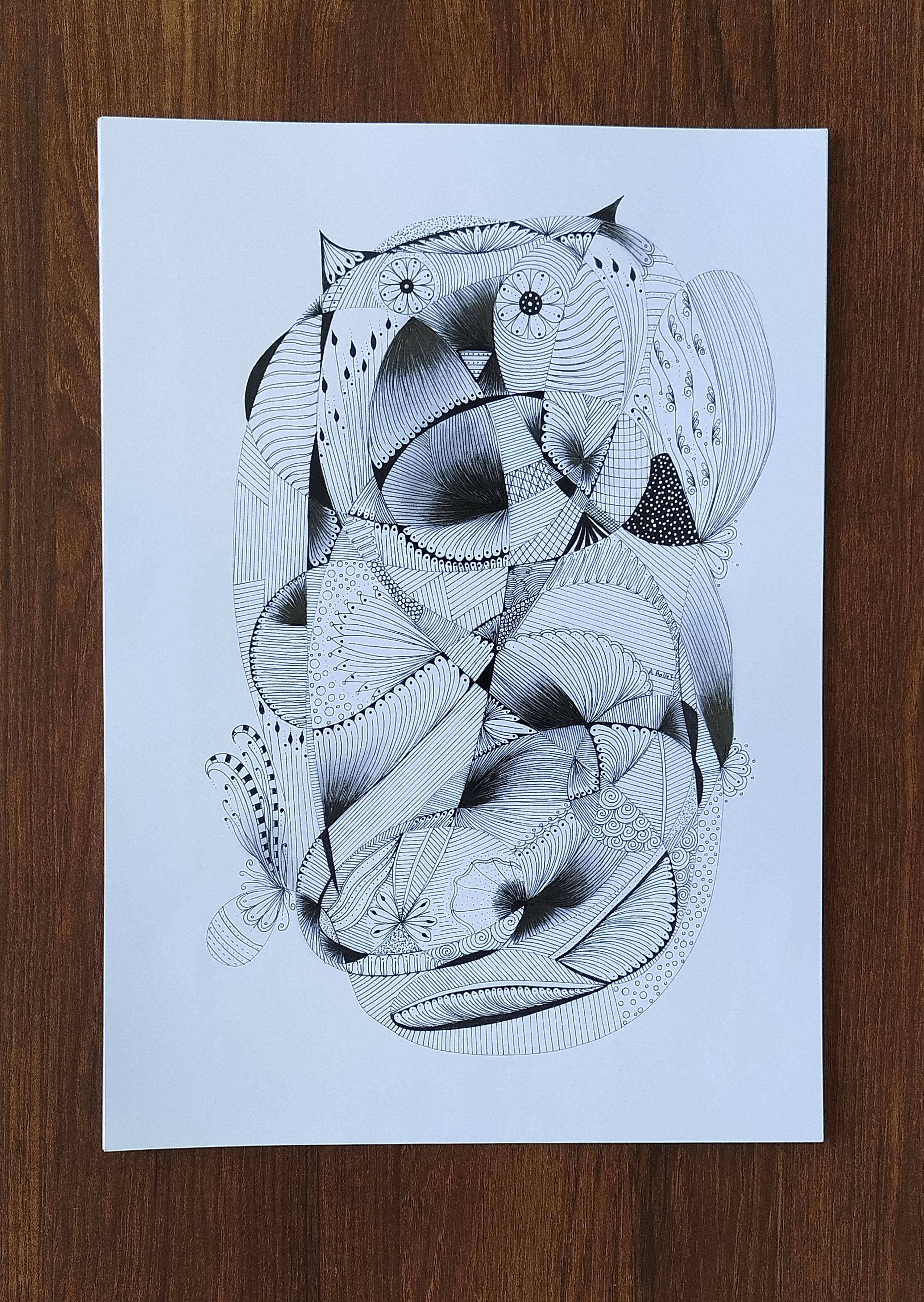 Matériel: Feutre fin noir, stylo gel or et blanc