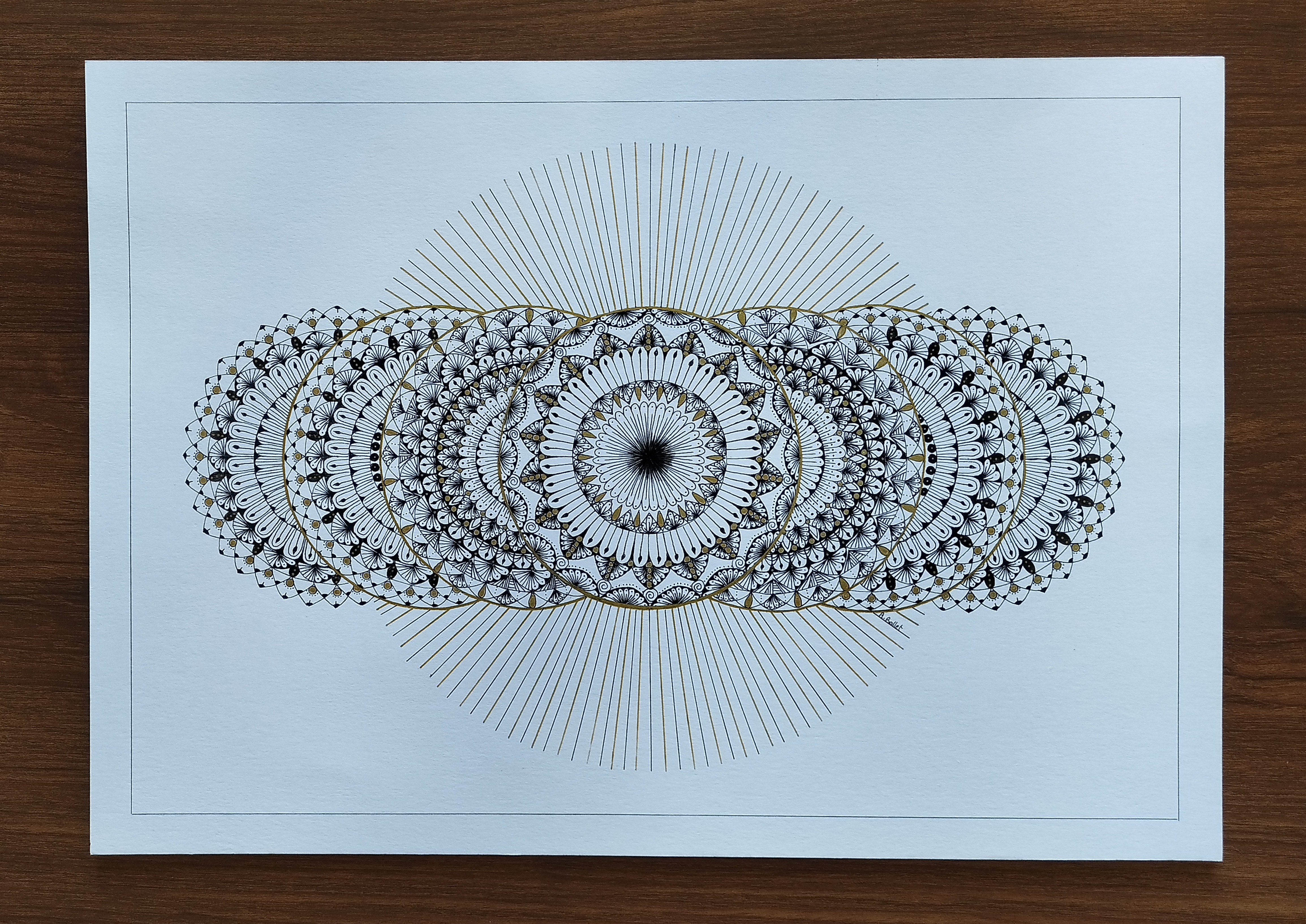 Matériel: Feutre fin noir, stylo gel or et blanc