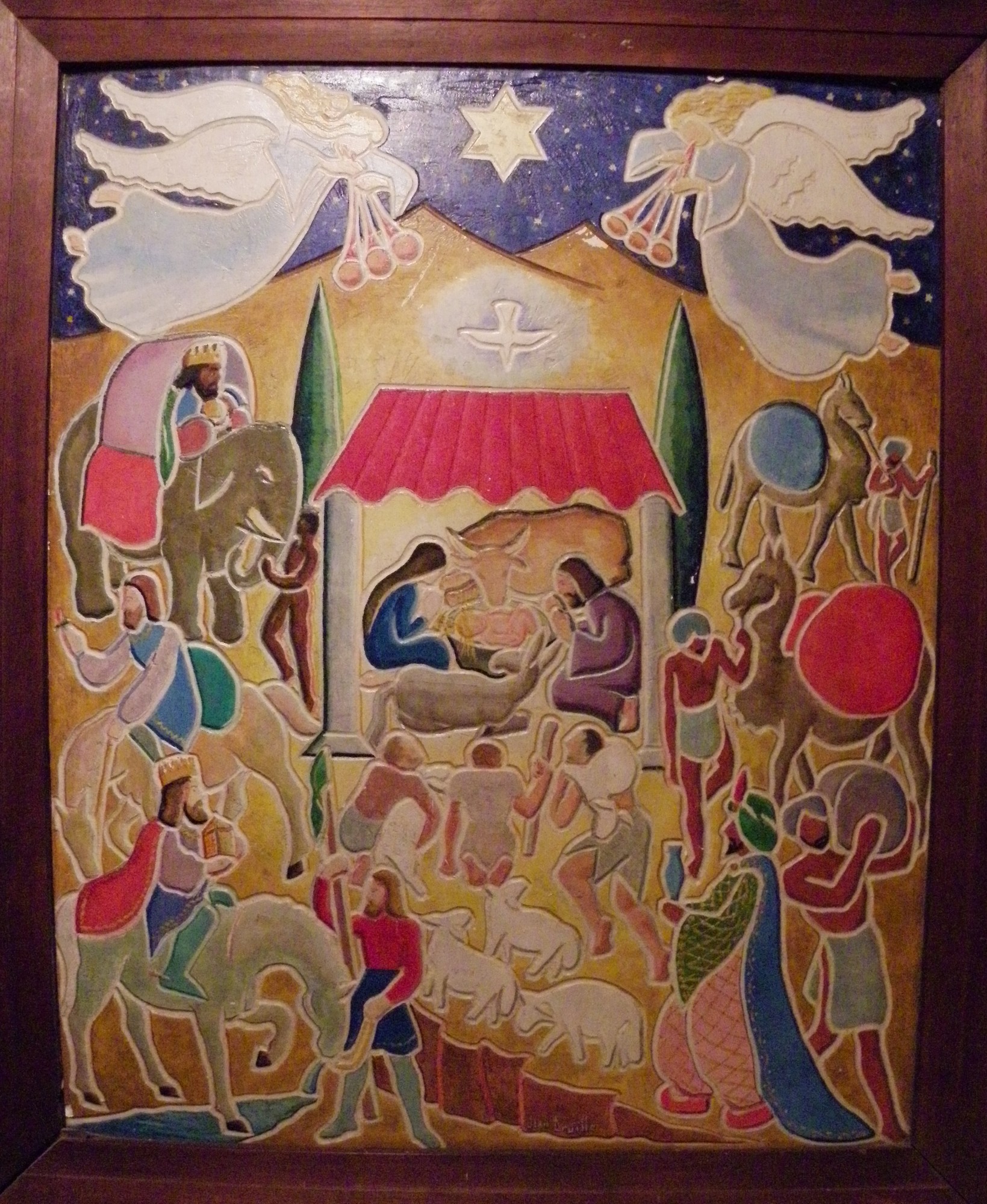 J'ai été contacté par le biais de mon blog par Delphine. Elle m'a trouvé en cherchant des informations sur le peintre Jean Druille, car elle a déniché dans le grenier d'une maison ancienne achetée il y a quelques années un tableau intitulé « la Nativité » et signé Jean Druille.