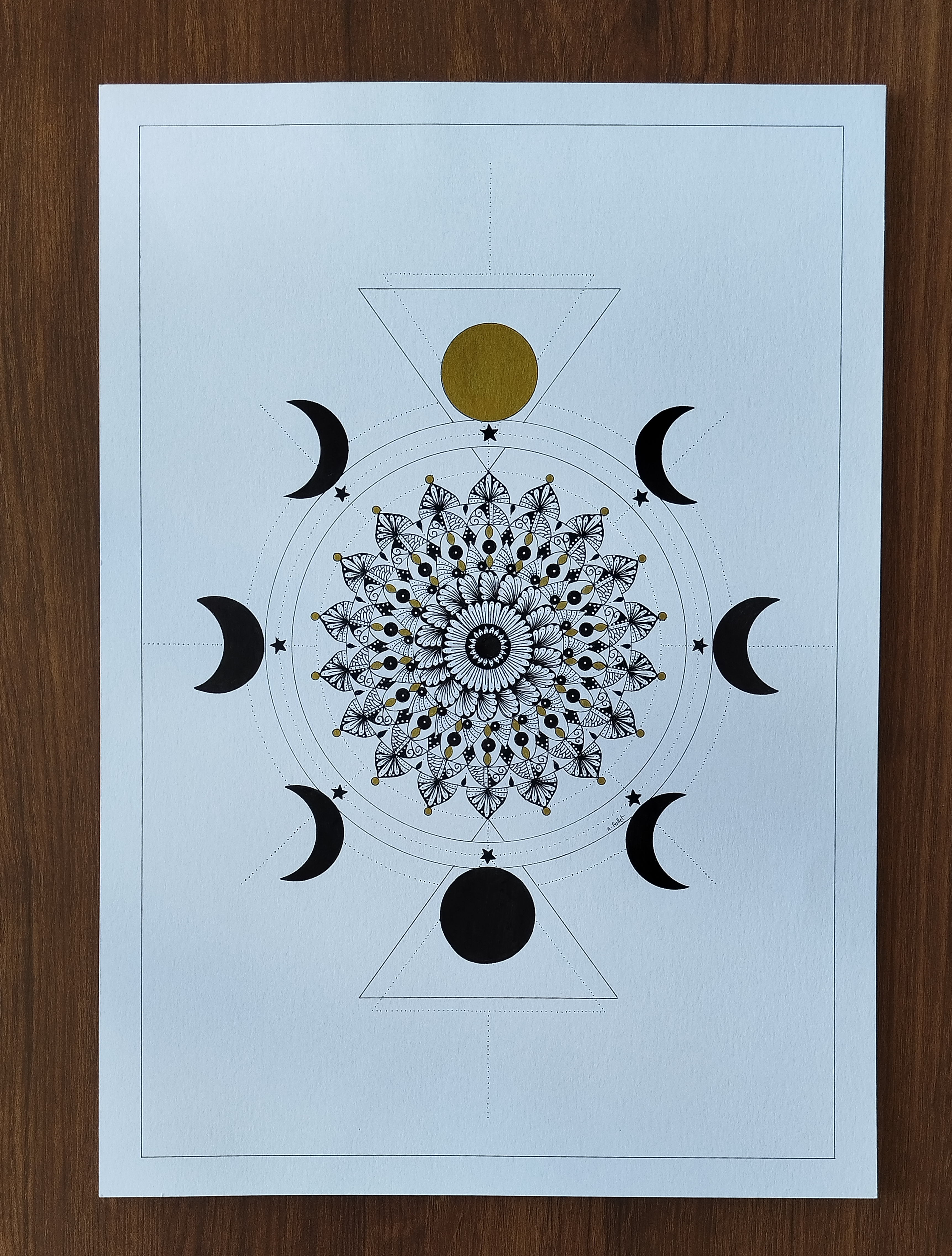 Matériel: Feutre fin noir, stylo gel or et blanc