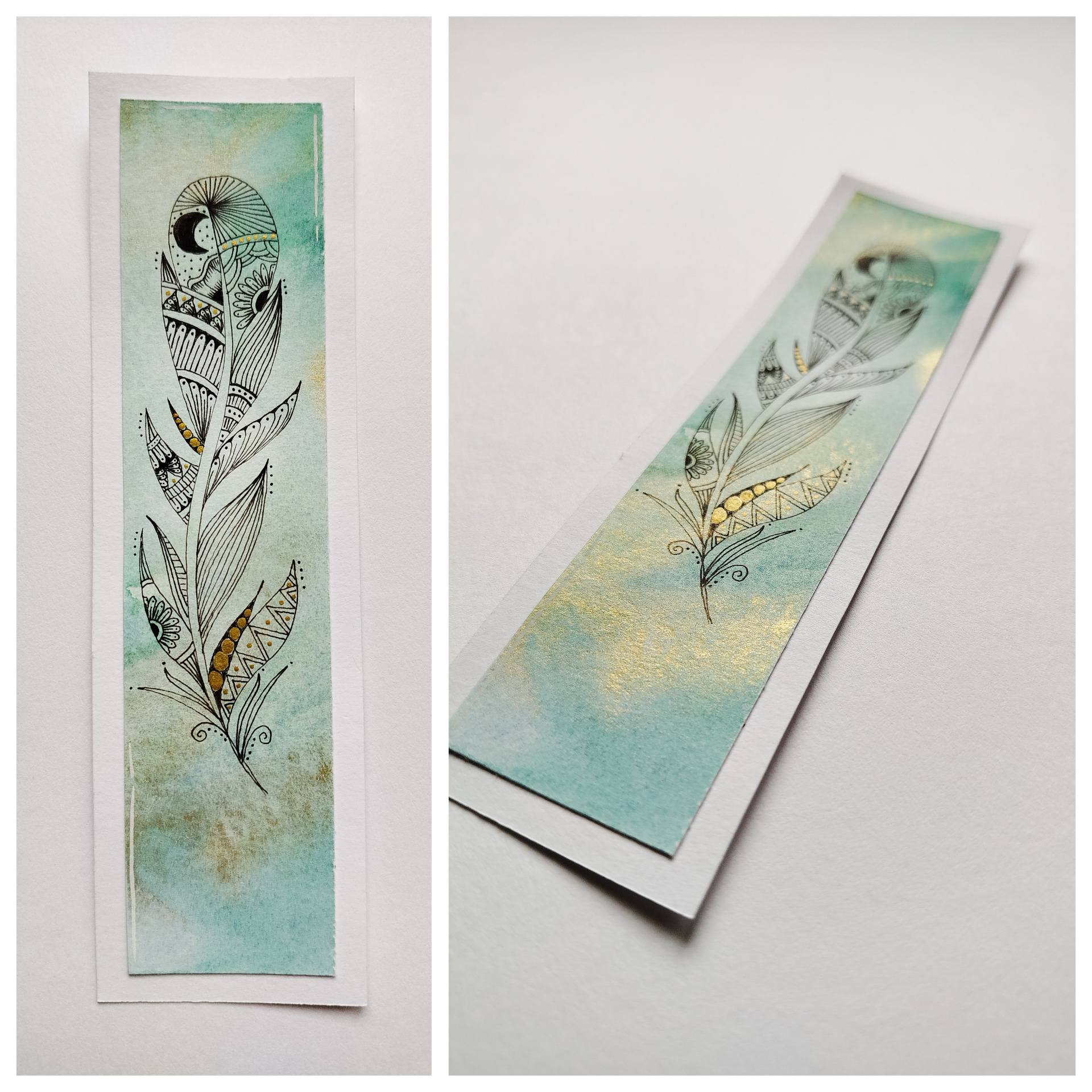 Matériel: Feutre fin noir, encre or, aquarelle