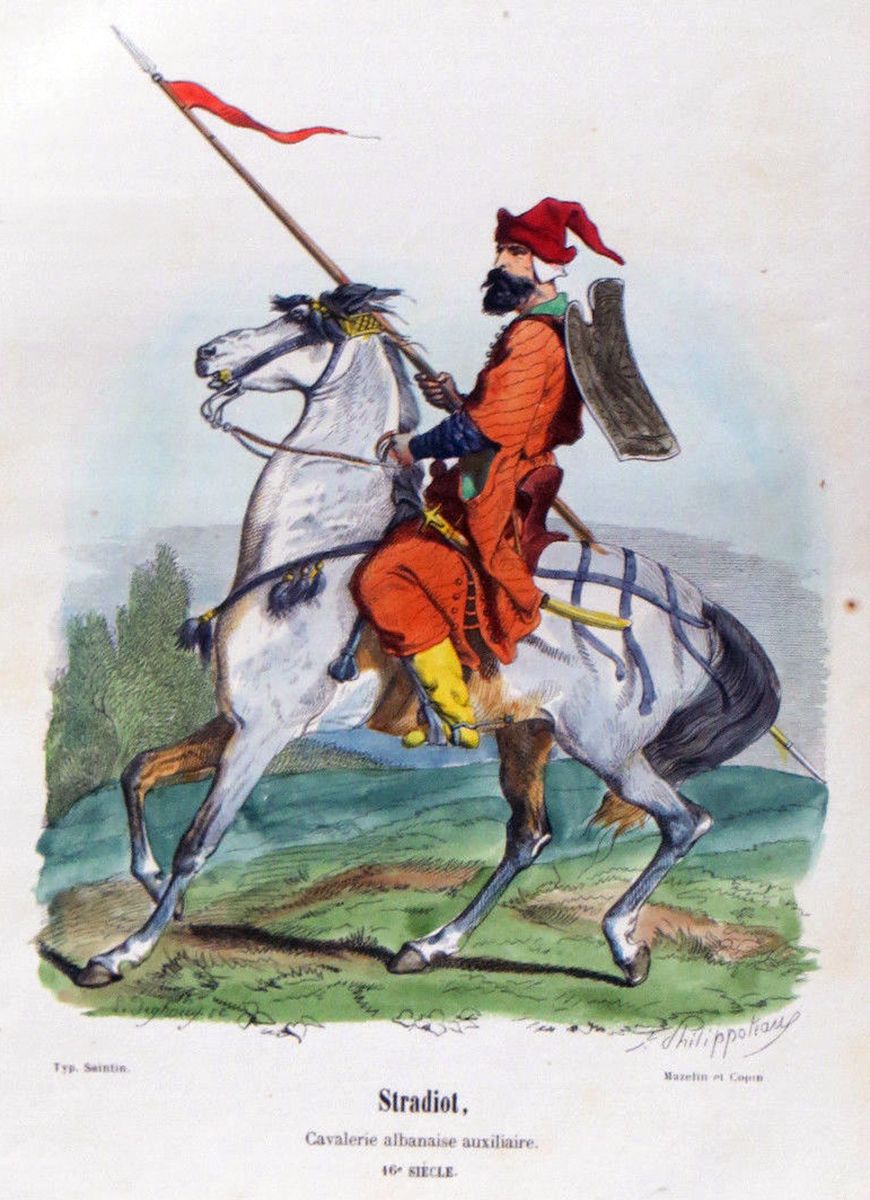 Un Stradiote, cavalier d'élite albanais. Sa légèreté et sa mobilité permettaient à Skanderbeg de mener une guérilla foudroyante contre des forces écrasantes.