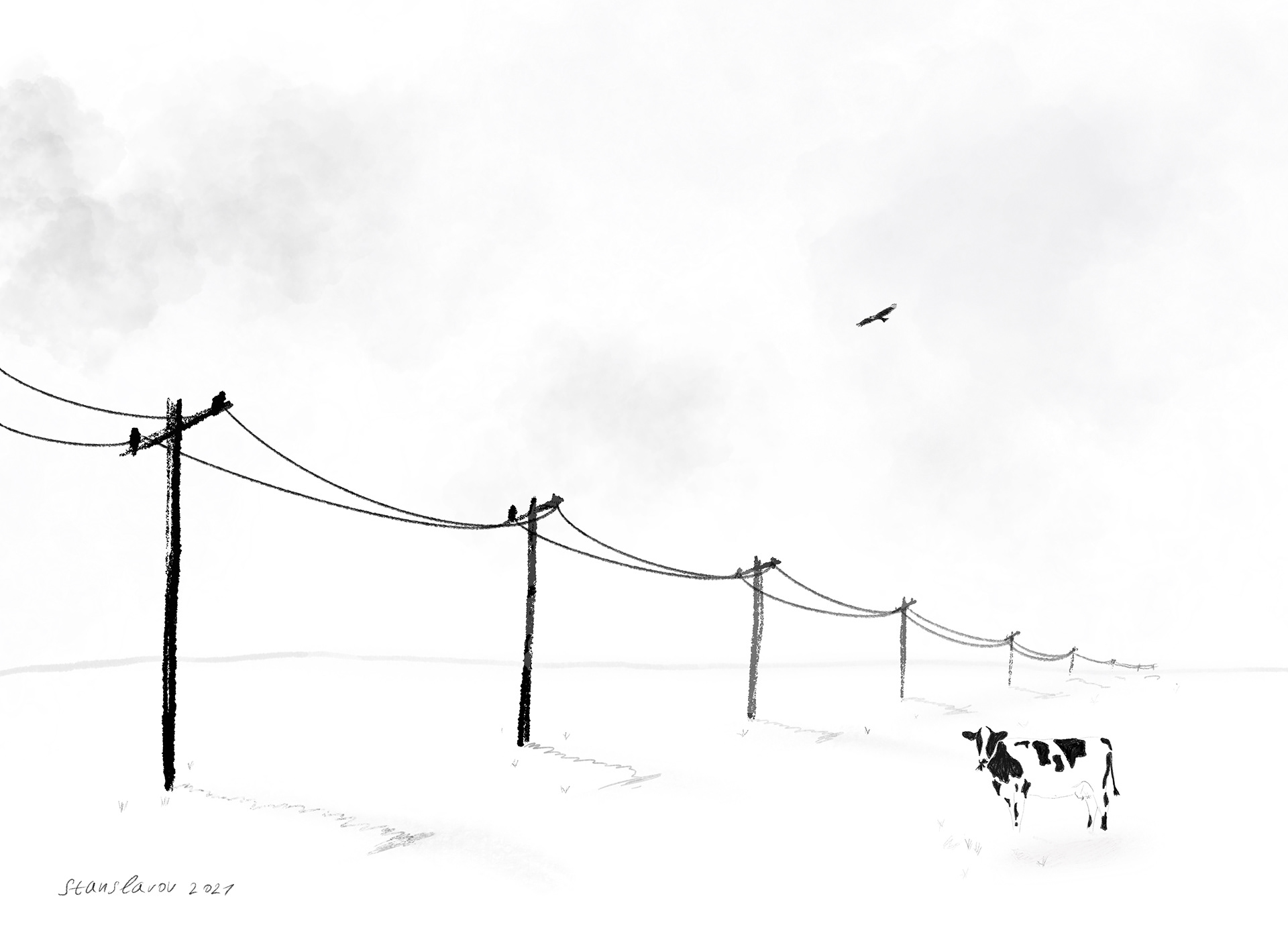 Minimal art with cow and perspective - create on IpadPro and Procreate