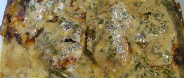 Aujourd'hui je vous propose un nouveau plat à base de blancs de poulet, cuit au four. C'est une version du poulet à la toscane : des blancs de poulet en sauce crémeuse au parmesan, tomates séchées et épinards que j'ai remplacés par de l'oseille.