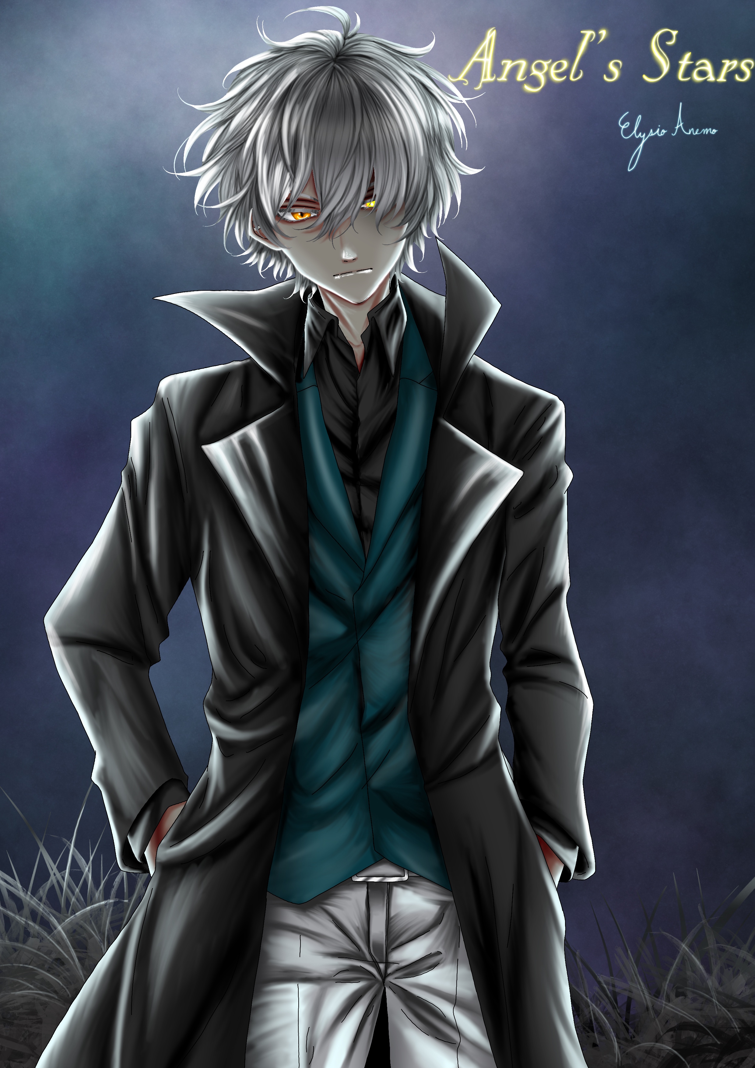 Voici donc Asaï, ce gamin rageux que j’aime tant ! Avec les lumières un peu refaite et des reflets qui me conviennent dans ses cheveux si satisfaisant à dessiner.