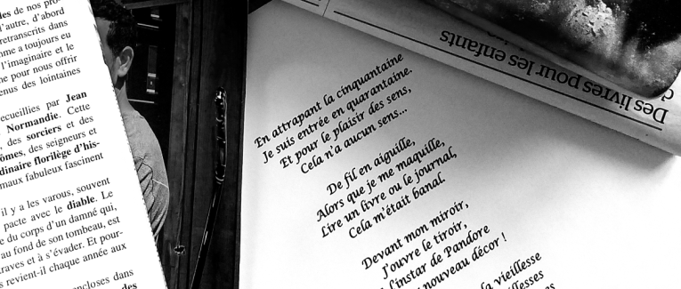 Un magazine, des lunettes de vue, un livre, un journal et la poésie.