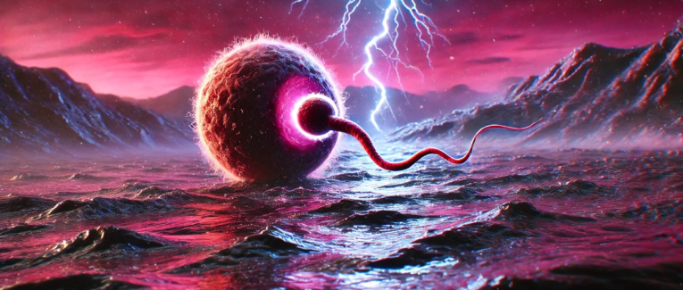 "En t'inspirant de toutes les descriptions de la nouvelle en pièce jointe, illustre une photo au format large, sur film analogique 16 mm de la scène de symbiose entre Al et Béa."