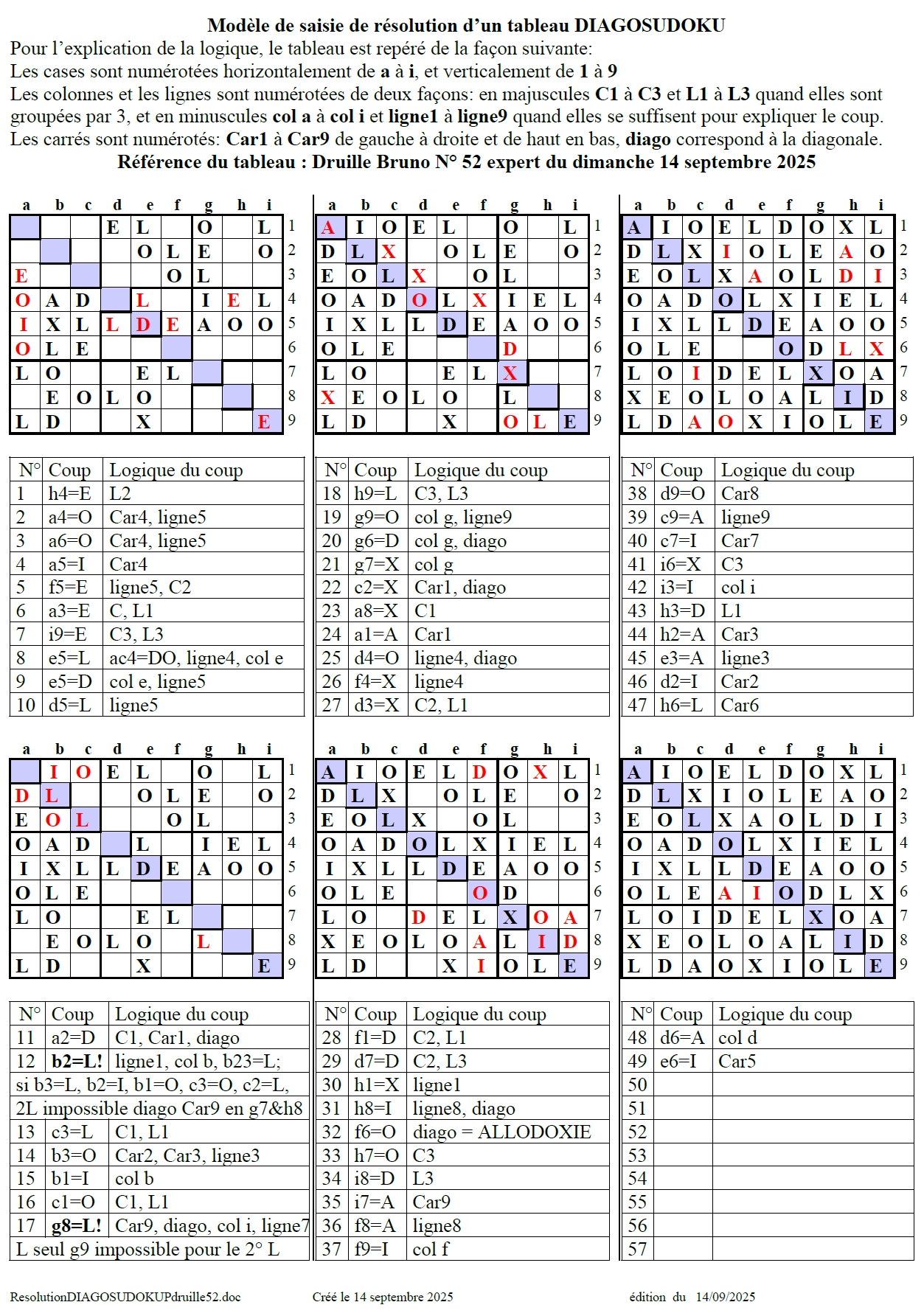 53° diagosudoku, avec la solution du cinquante-deuxième