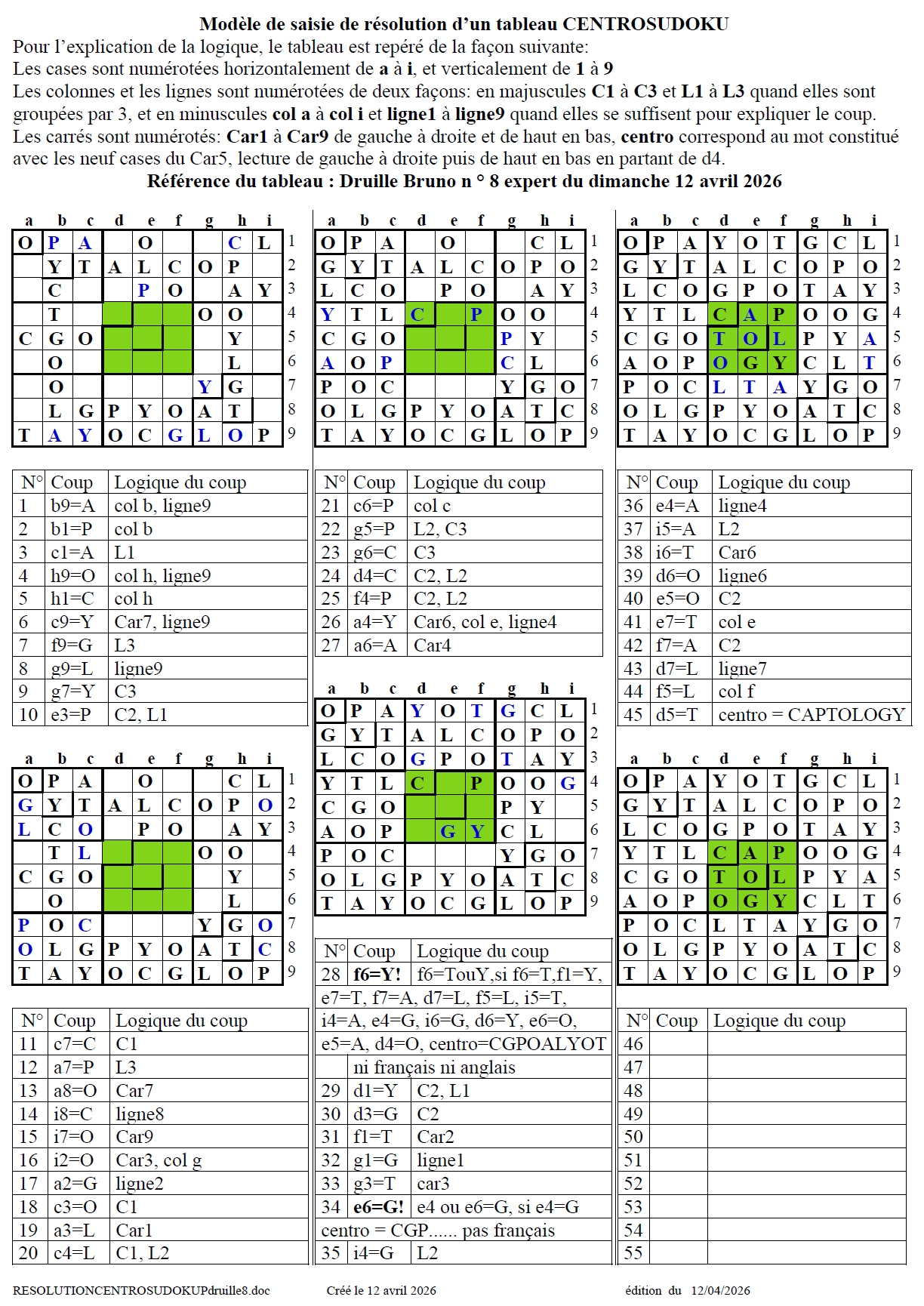 Voici la solution du huitième centrosudoku : CAPTOLOGY.