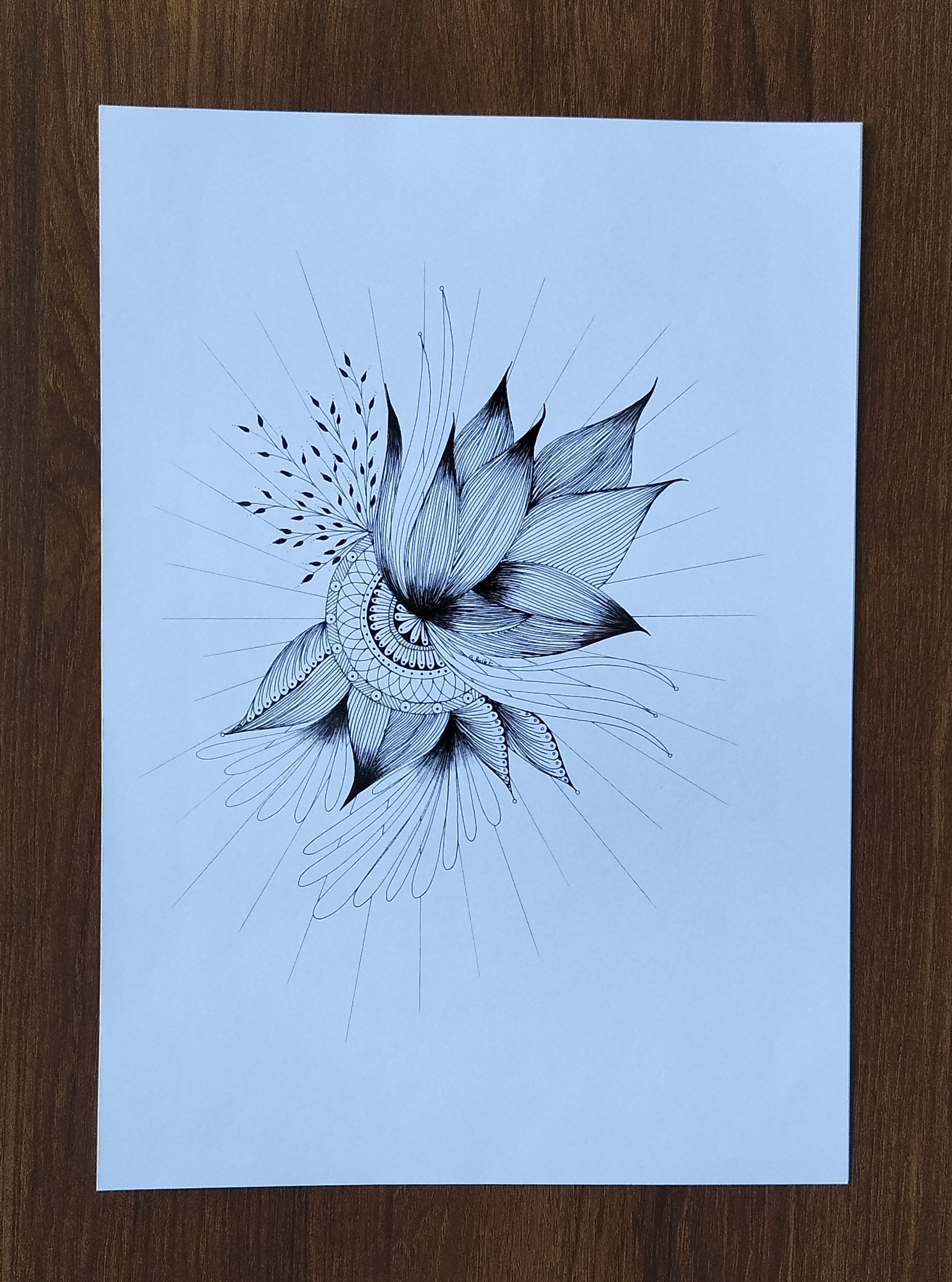 Les pétales sombres s'écartent pour laisser jaillir une lumière géométrique, rappelant que notre clarté naît souvent de notre profondeur.