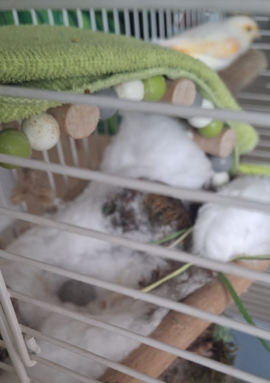 J'ai calqué la prétendue ponte de l'oeuf de Croc Croc avec la ponte des oeufs de Wings et Chicken, mes canaris. On penche pour Tenders. C'est un joli prénom.
