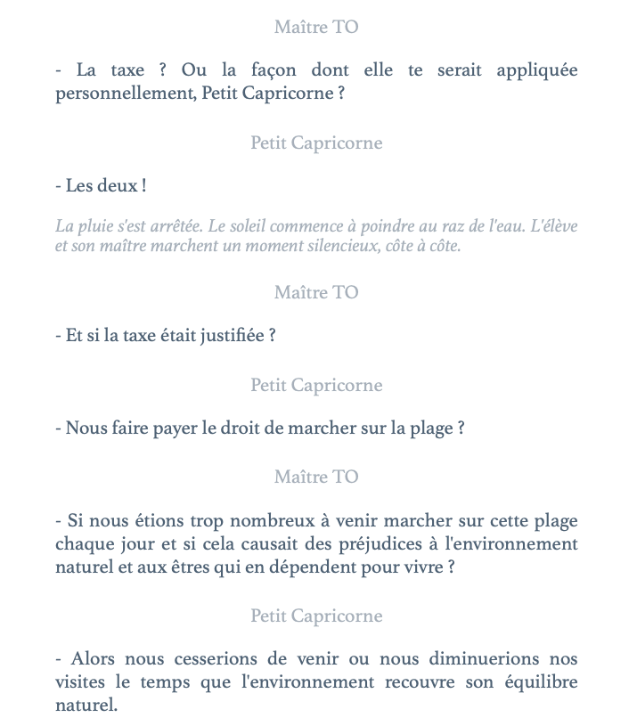 Sinon ce petit dialogue pose très bien le problème que vous voulez soulever 🙂