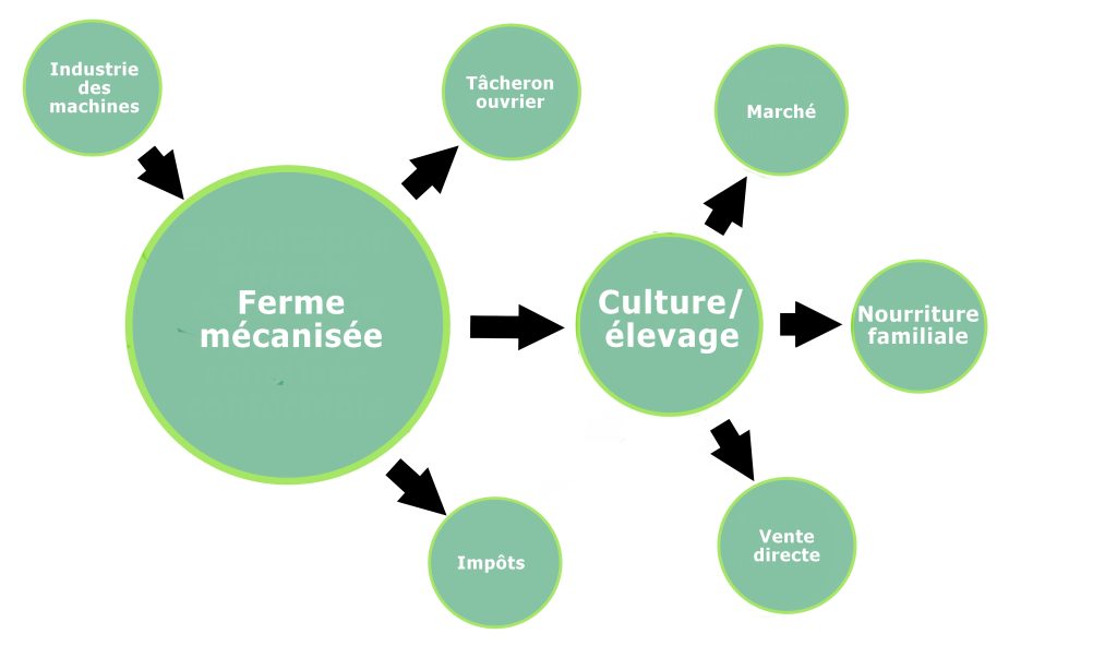 L’agriculture aujourd’hui. Le paysan est devenu agriculteur puis chef d’exploitation. C’est un patron, il a des salariés selon la taille de son entreprise. Il y a de nouveaux acteurs avec lesquels il interagit de manière intriquée, l’industrie agroalimentaire, qui lui fournit des compétences, ses semences, et des produits phytosanitaires et des engrais pour booster sa production. Une véritable industrie au même titre que les autres. La subsistance familiale n’est plus que secondaire. Les impôts, les charges, sont gérés exactement comme dans n’importe quelle autre entreprise, avec une comptabilité. Il y a encore 100 ans, le raté de la famille dont on ne savait que faire reprenait la ferme, désormais c’est un technicien d’exploitation avec un diplôme, un spécialiste, au même titre qu’un mécanicien ou un électricien.