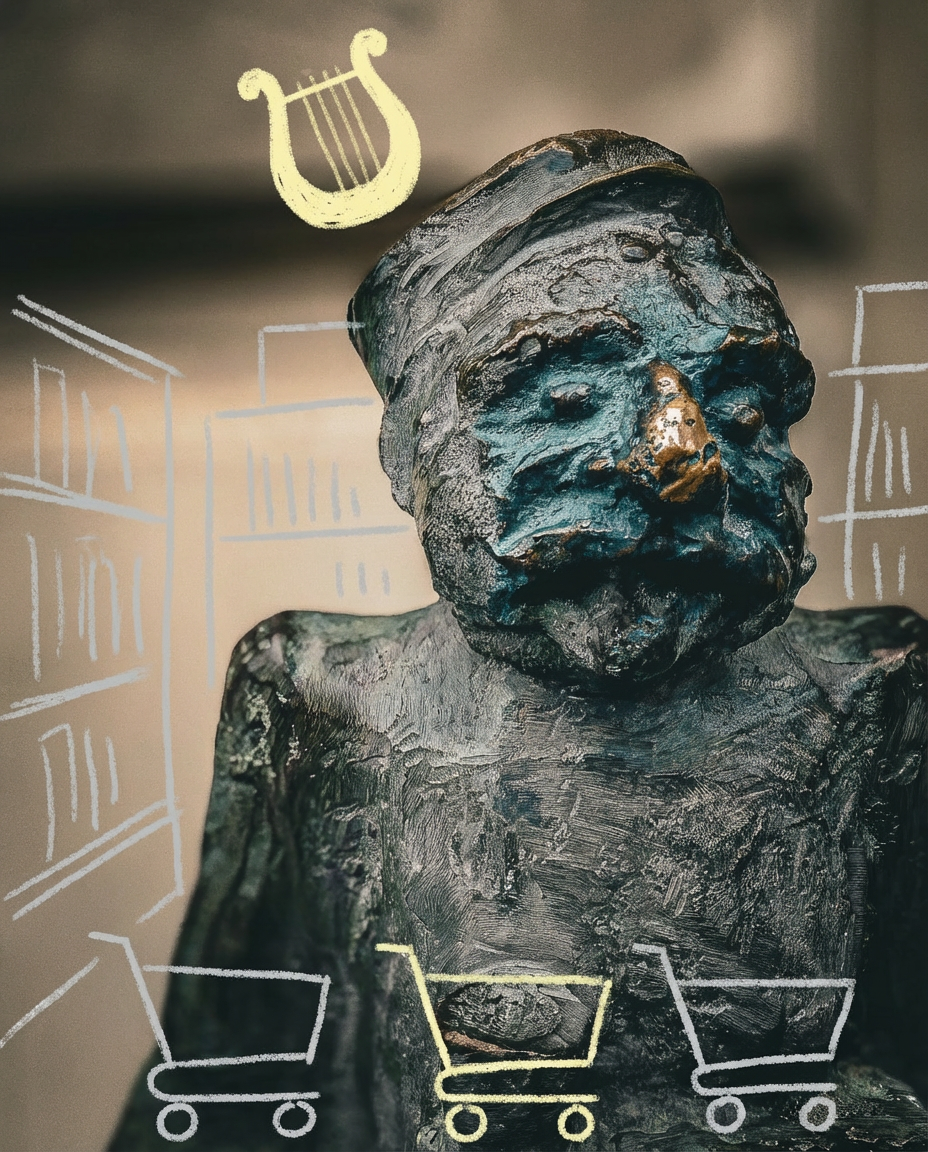 Ce poème est une rêverie inspirée du mythe d’Orphée, ce musicien qui descend aux enfers pour tenter de ramener celle qu’il aime grâce à la puissance de son chant. Ici, Orphée devient une figure moderne perdue dans les néons et les rayons d’un supermarché, où sa musique tente encore de transformer un lieu banal en passage entre les mondes.