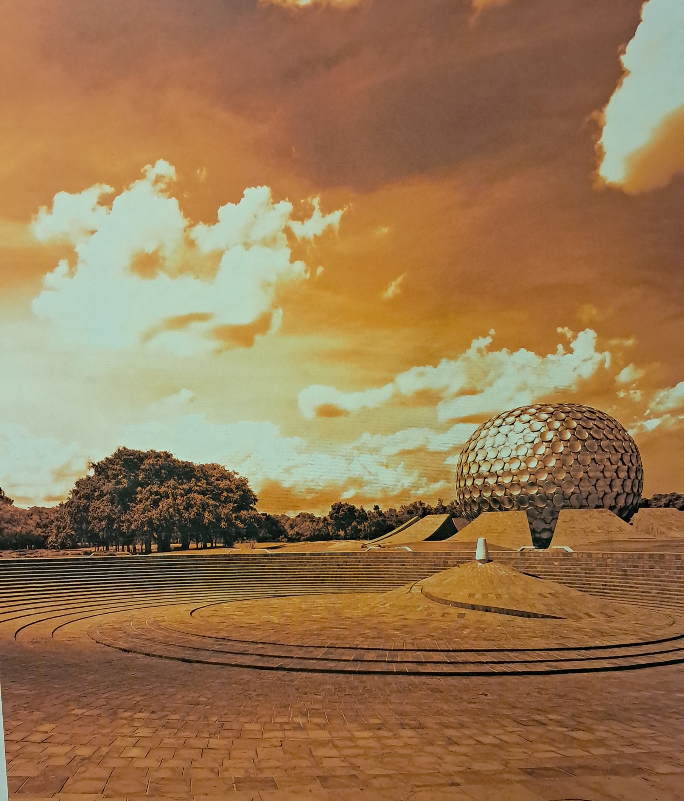 L'un de ces grands projets est la création du Matrimandir, (quelle étrange coïncidence avec l'ashram Maithri Mandir où j'ai réalisé ma cure ayurvédique à mon arrivée !) Pensé dès 1965 par l'architecte Roger Anger en collaboration avec la Mère, cette structure a pour vocation de représenter un lieu spirituel et areligieux pour les adeptes du Yoga Intégral conçu par Sri Aurobindo.