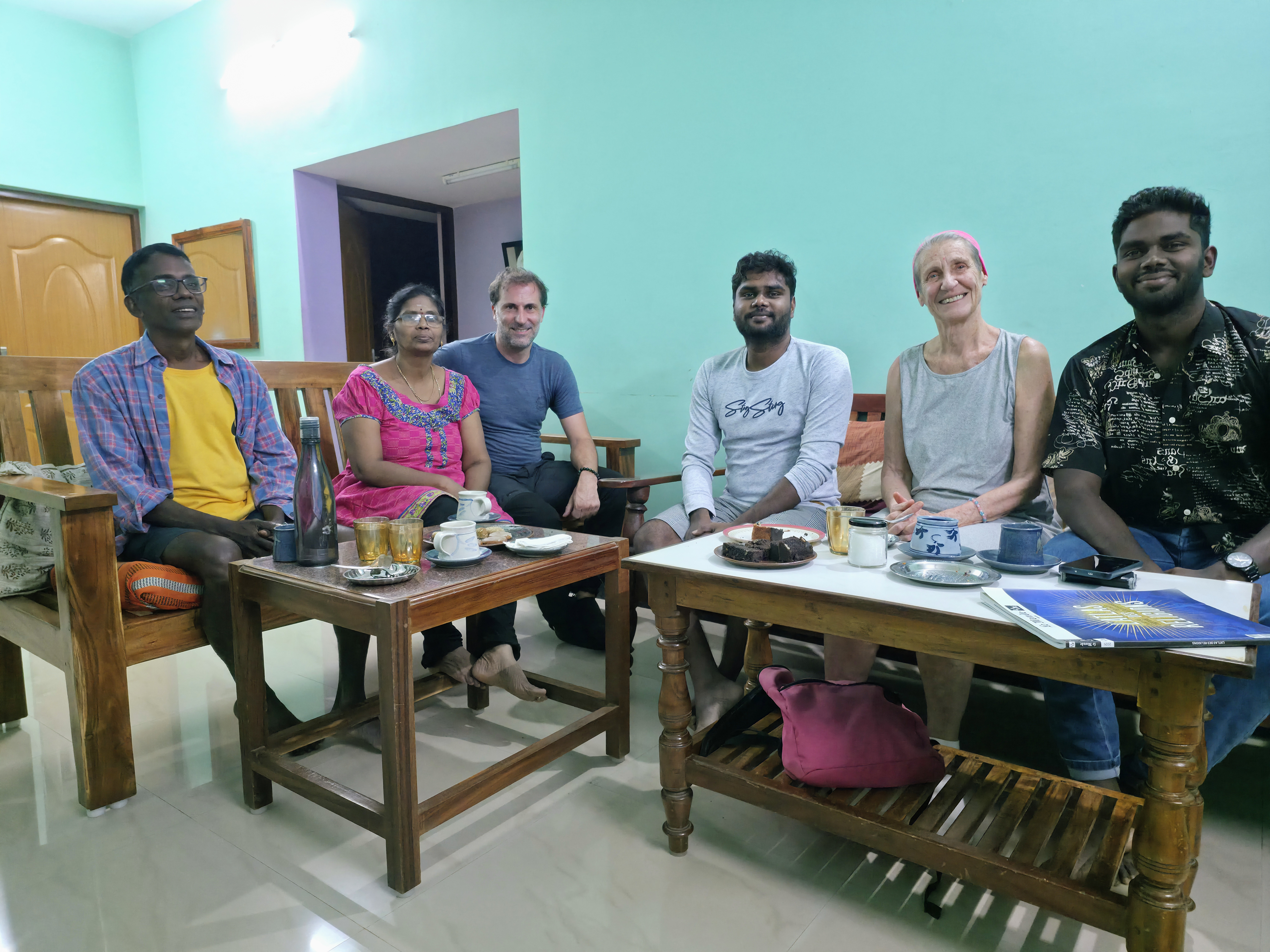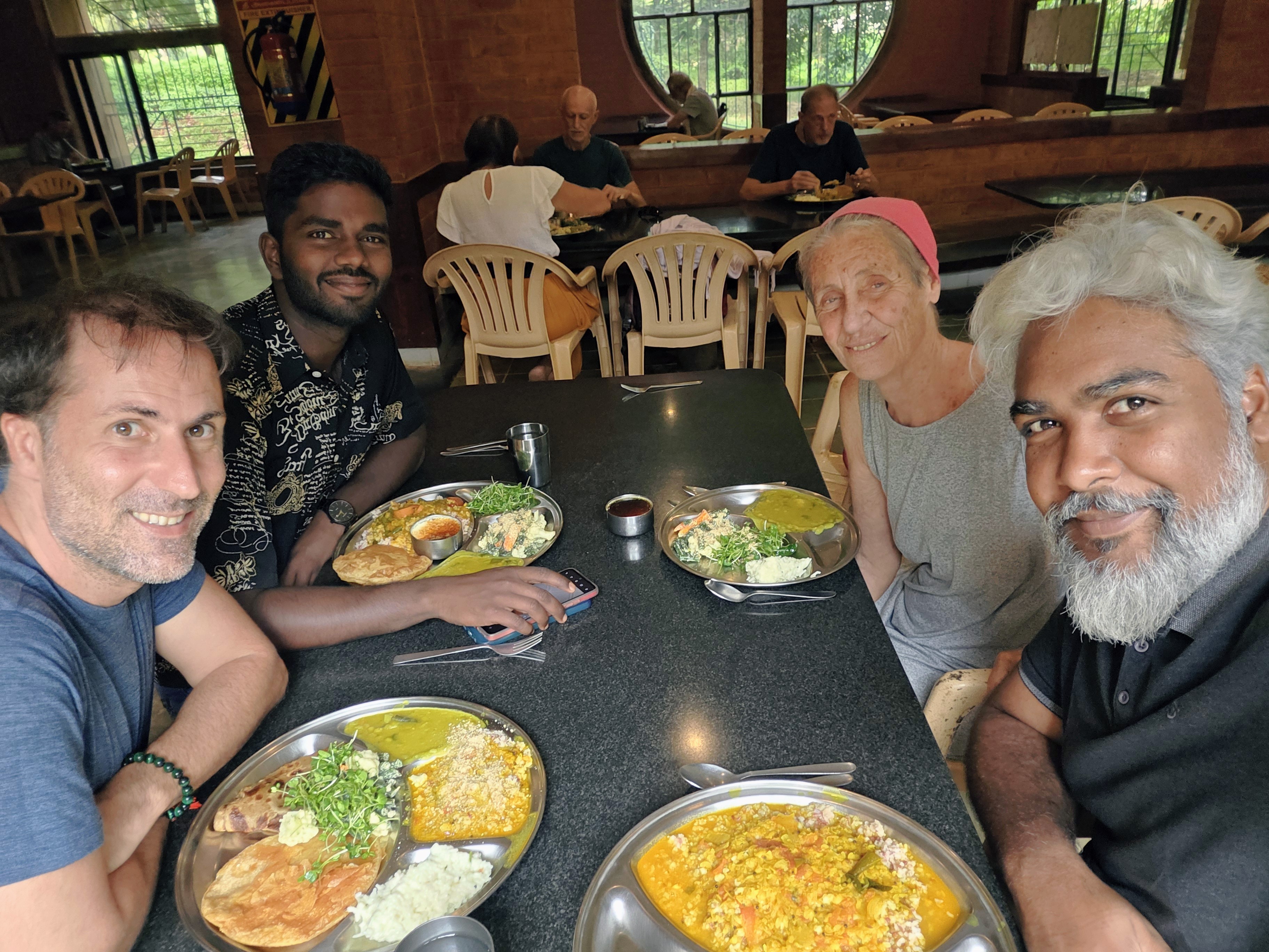 C'est donc en sa présence ainsi que celle son père que nous découvrons ce lieu si particulier, le Maitri Mandir et ses jardins, le parc extrêmement boisé et l'école de son enfance, la solar kitchen où nous pouvons déjeuner parmi les Aurovilliens, avant de rejoindre la maison de sa famille où nous sommes reçus pour le goûter.