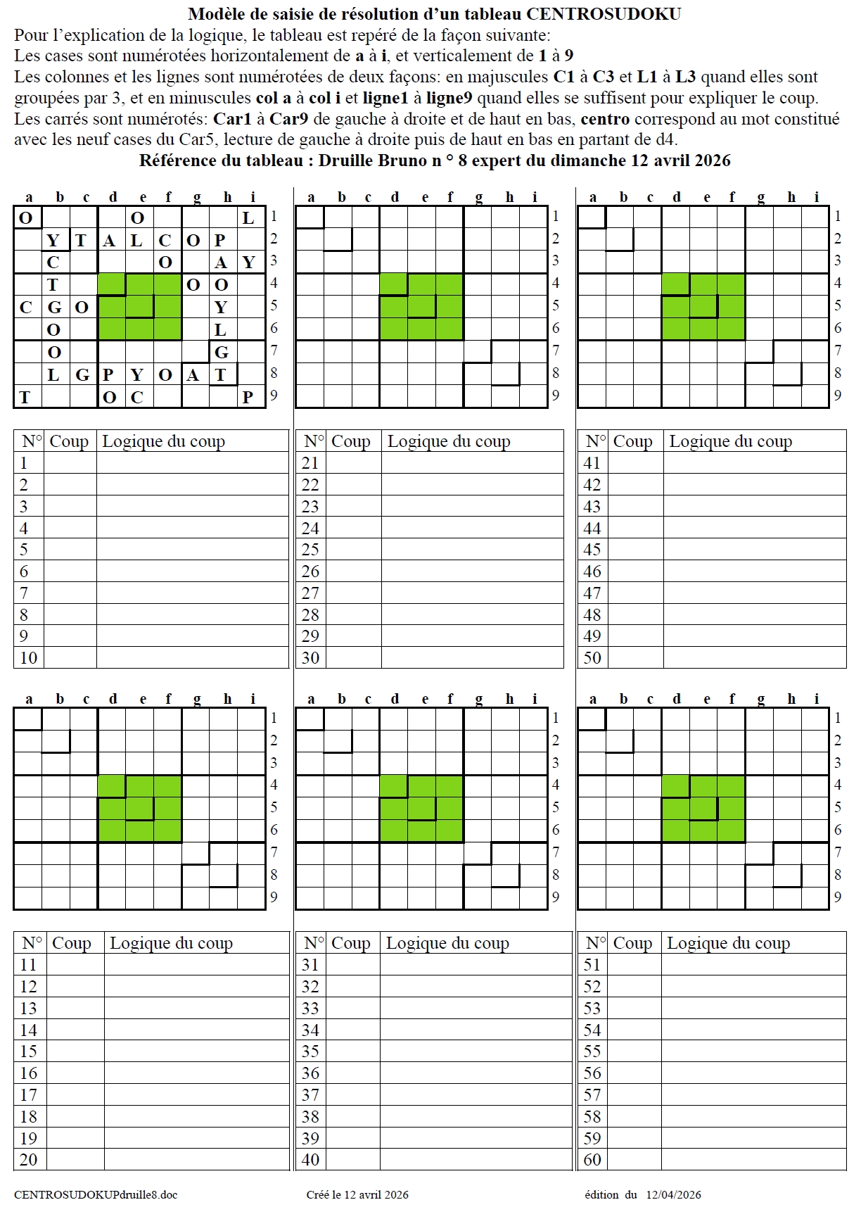 huitième centrosudoku, avec la solution du septième centrosudoku.