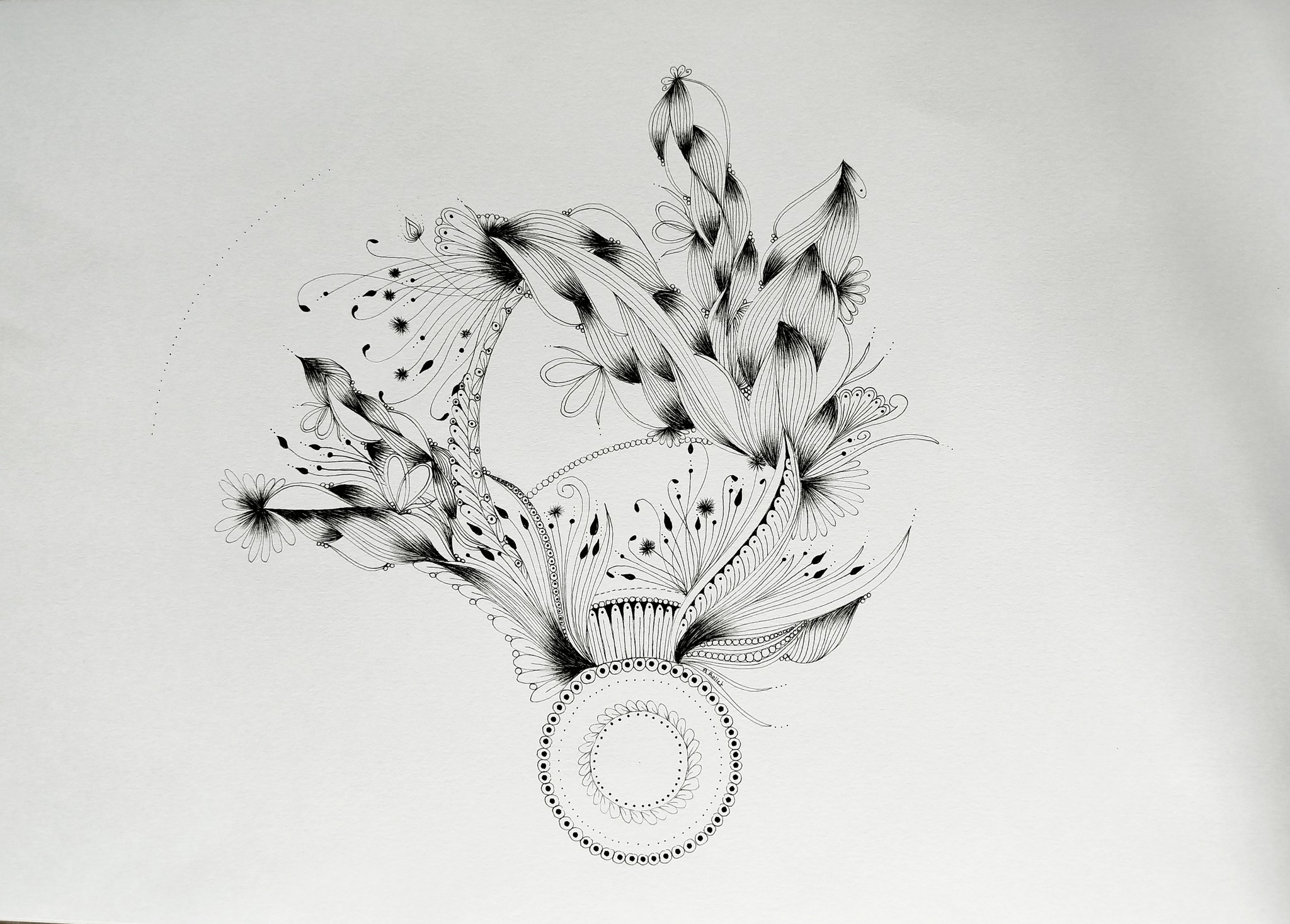 Naissance délicate de la conscience, où la plume s'unit à la fleur, légère respiration du cosmos.