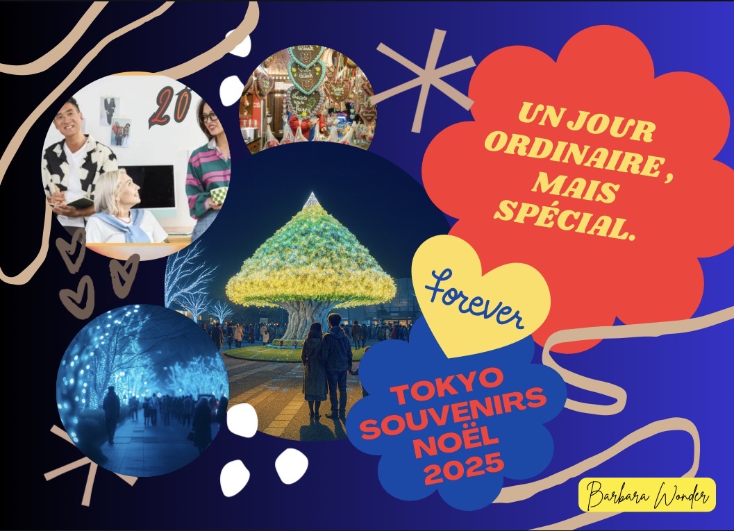 Il dĂ©crivait les arbres dorĂ©s, lâavenue Koen-dori transformĂ©e en tunnel bleu Ă©tincelant, les lumiĂšres dansantes sur le sol, lâarbre central entourĂ© de chevaux lumineux, comme un manĂšge de lumiĂšre.