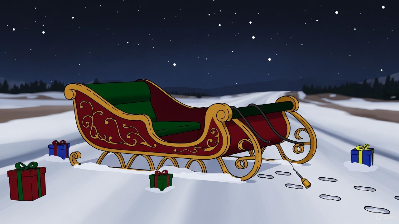 -Oh vous voulez parler de notre traîneau. Ne vous inquiétez pas il va bien. Nous sommes juste mal garé, je l’avoue! Mais comme personne ne nous voit plus en ce moment, on s’est dit que personne non plus ne serait gêné par notre moyen de locomotion au plein milieu du chemin.