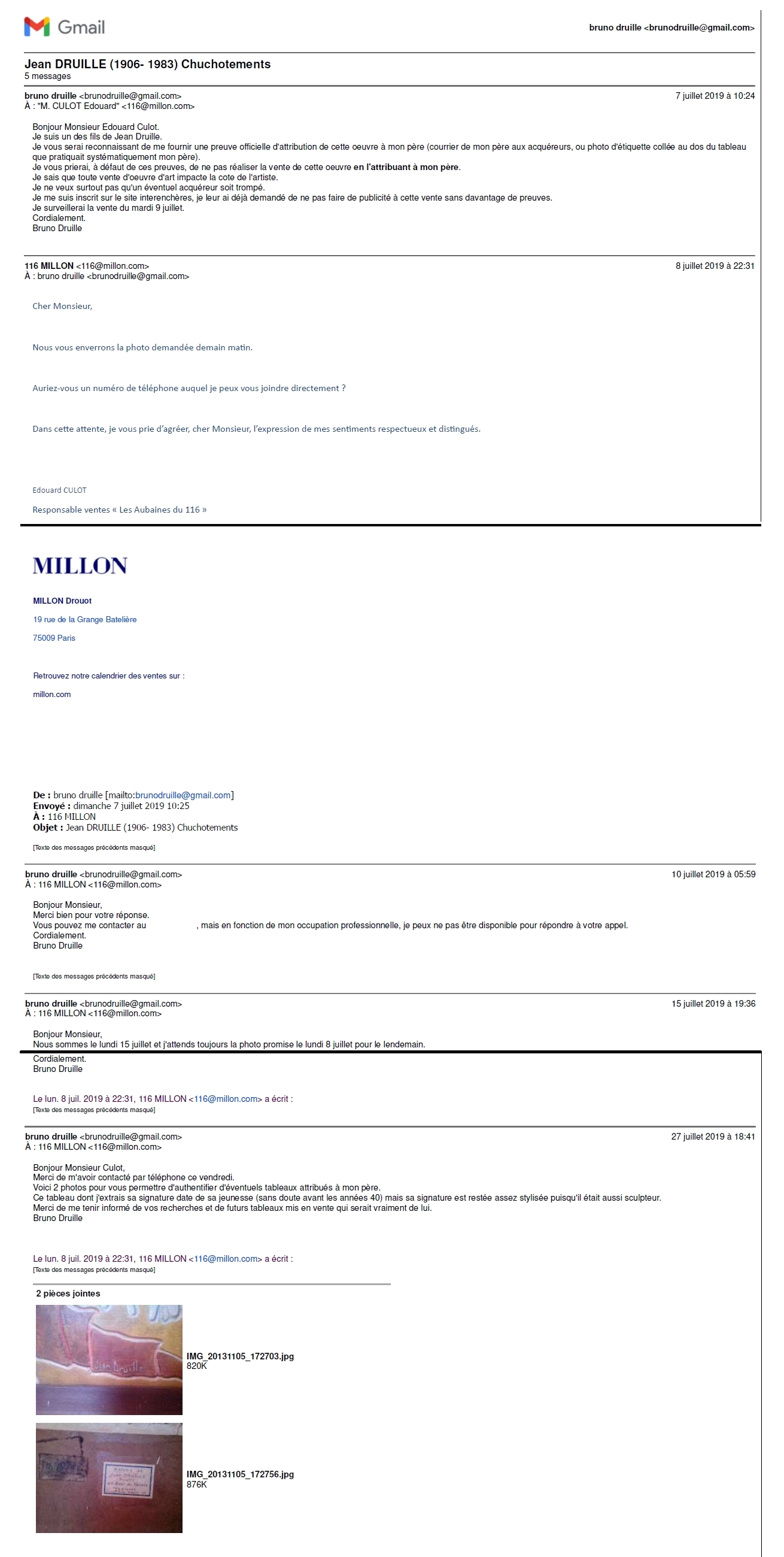 J'avais en priorité sollicité Interenchères et finalement obtenu les coordonnées de la société Millon de ventes aux enchères le 7 juillet 2019.