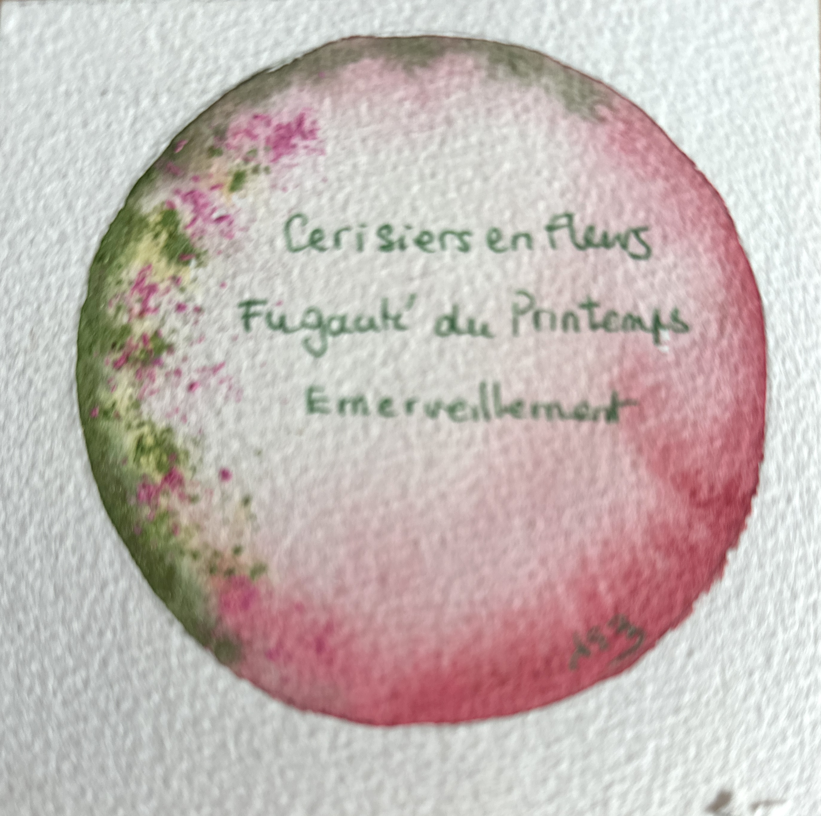 J"ai écrit des haïkus que j'ai mis en couleur par l'aquarelle en revenant de ma résidence au Japon dont certains seront dans mon livre.