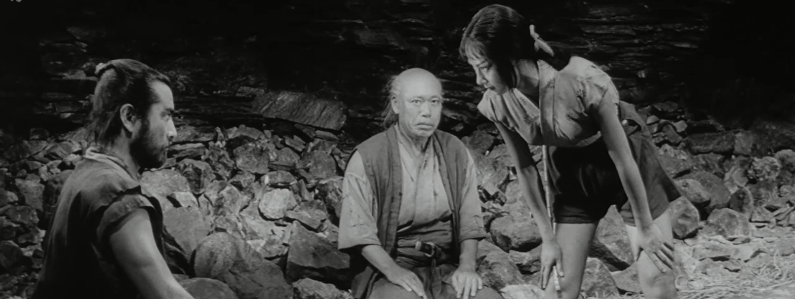 Tantôt audacieux, tantôt lâches, vaniteux et humiliés, crédules et méfiants, désobéissants et serviles, une inconscience exprimée par les corps : gestes désarticulés, confusion entre mensonge et vérité, ainsi quand le général se présente en donnant son nom, ils l’accusent de menteur, Kurosawa nous présente deux personnages ridicules mais attachants car la moquerie est exclue si l’on reste attentif. En effet les deux paysans sont illettrés et n’ont pas reçu d’instruction et si ces deux personnages s’accusent mutuellement et accusent des éléments extérieurs, c’est l’effet de l’ignorance avant tout, conséquence d’une société inégalitaire, laissant pour compte les paysans désarmés en tout et avant tout par ce manque d’instruction. Leur être leur est étranger tout autant que ce conflit qui les dépasse complètement.