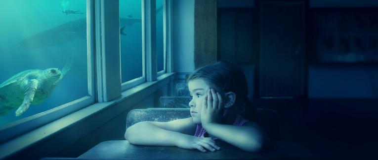 Assise dans cette salle de classe vide, elle attend. Sous le regard bienveillant de la directrice, elle s’autorise à voyager. Elle rêve d’aventures. Comme celles de Samy, dans le dessin animé qu’elle affectionne tant. Sur le dos de cette petite tortue adorable, elle s’imagine parcourir les mers et les océans. Partir à la découverte de trésors oubliés, de cités englouties par les eaux. Rencontrer des poissons-clown, des baleines et des dauphins. Rire aux éclats. Être enfin heureuse…