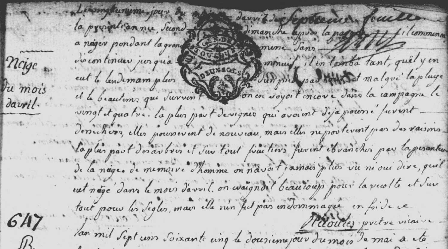 J'ai trouvé cette anecdote neigeuse en effectuant des recherches généalogiques, je l'ai publiée dans le sous-forum Catastrophes et calamités de Généanet en octobre 2025.
