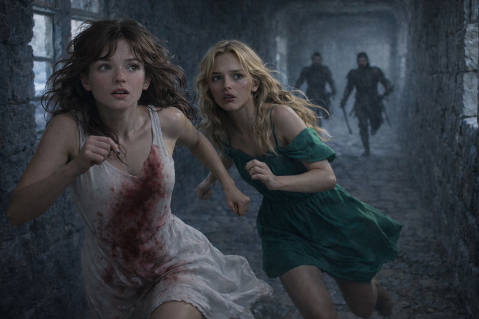 Dans leur course effrénée, elles ne se retournèrent pas, mais l’écho de pas précipités résonna dans leur dos : la chasse avait commencé.
