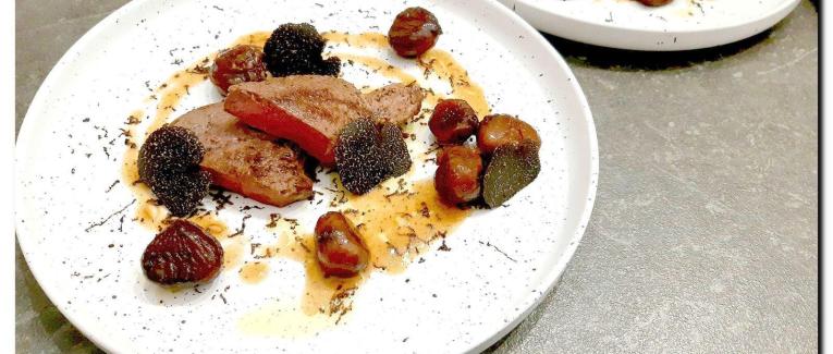 Ajoutez quelques châtaignes et des tranches de truffe.