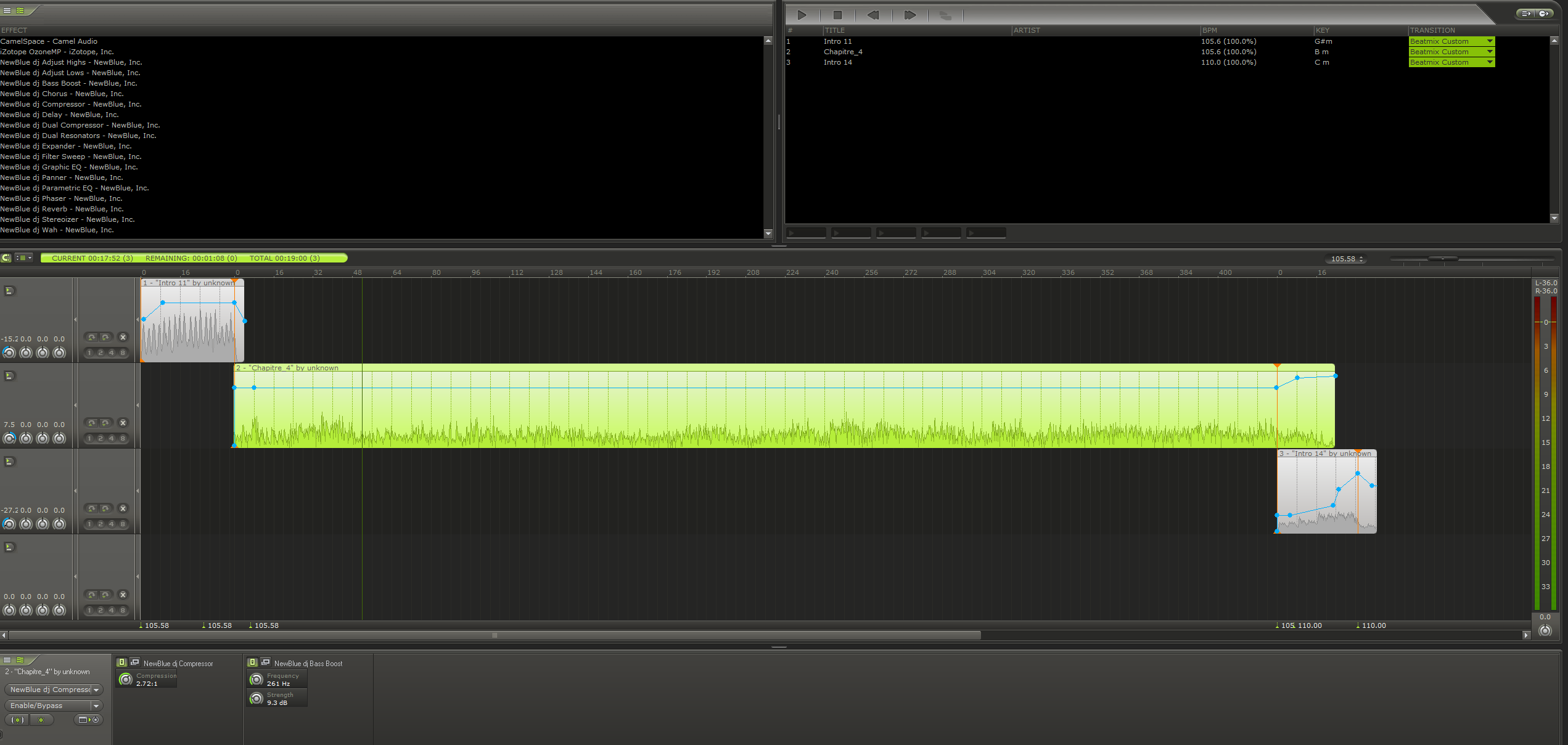 Parmi la dizaine de jingles que j'ai sélectionnés, j'ai choisi celles qui ont le tempo le plus proche du podcast. Ensuite quelques effets pour améliorer la profondeur et le tour est est joué !
