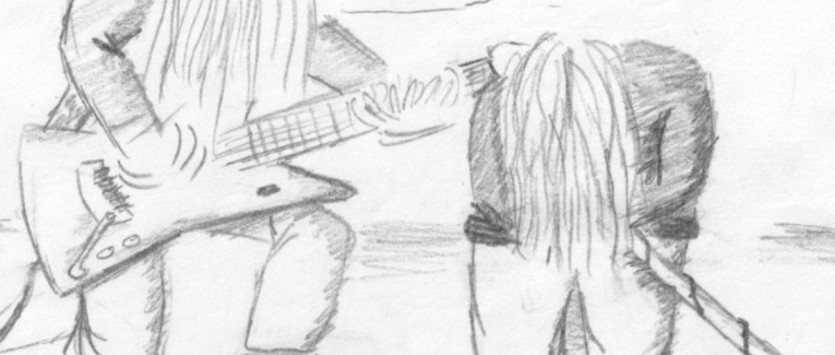 Mes nouveaux amis essayaient de créer leur premier morceau original, Countdown Death. Dépeindre la mort de façon cynique n’était pas tout à fait mon registre. Mais j’ai apprécié sortir de ma zone de confort et élargir mon horizon musical.