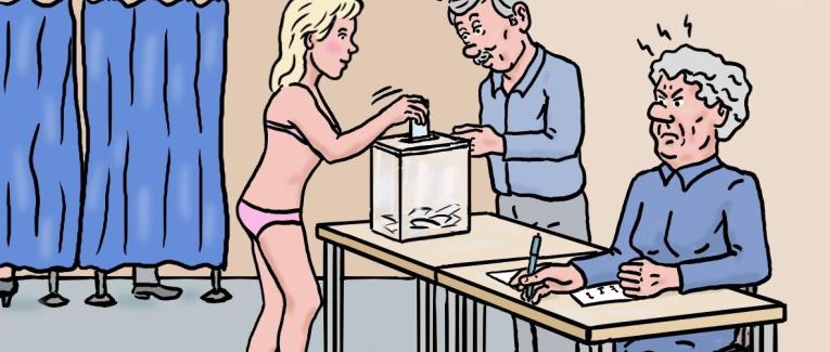 Voilà le scoop du jour : une électrice en maillot de bain ! Canicule ou pas, qu'en pensez-vous ?