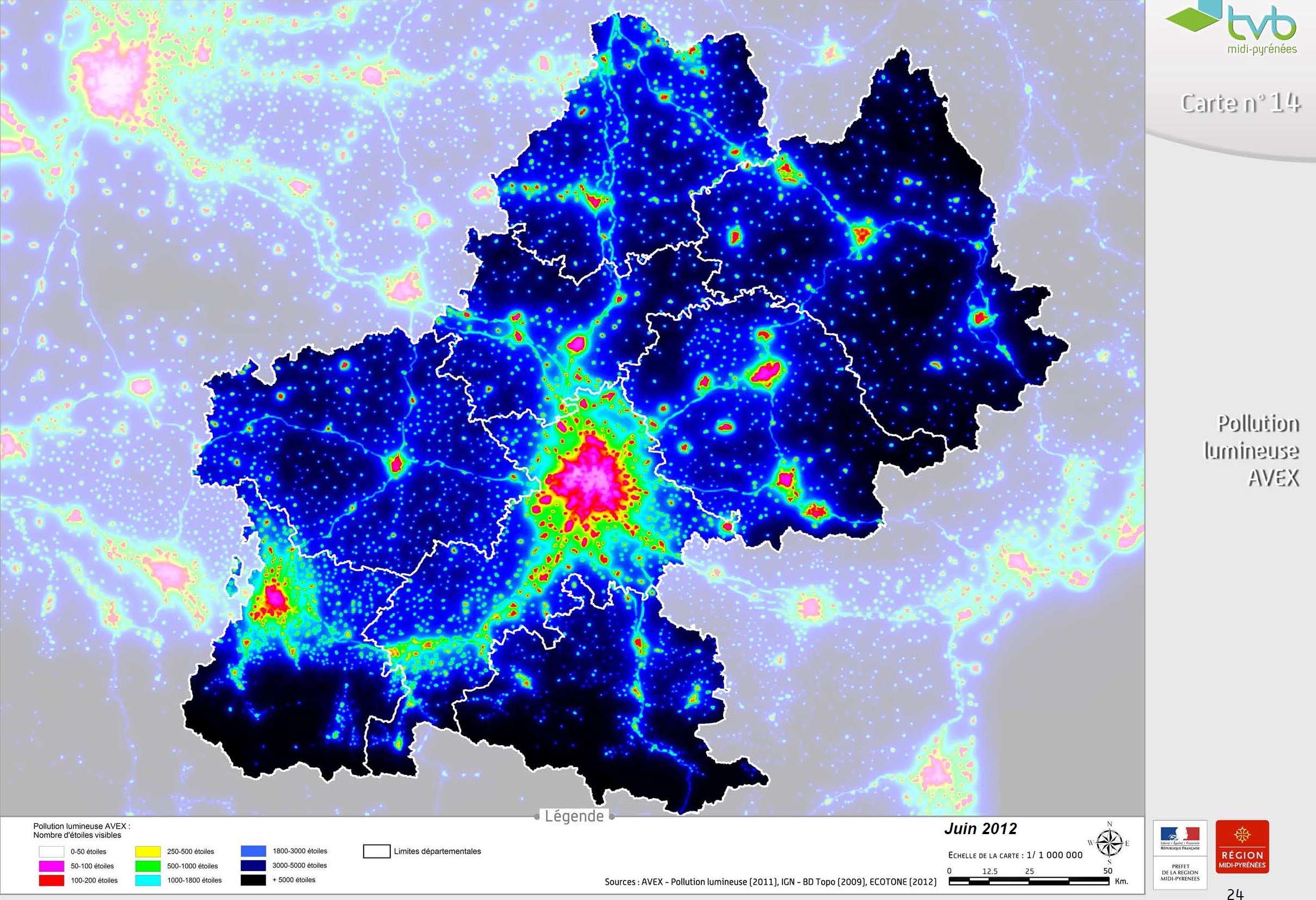 Carte Midi-Pyrénés SRCE 2012 carte n° 14 Pollution lumineuse AVEX