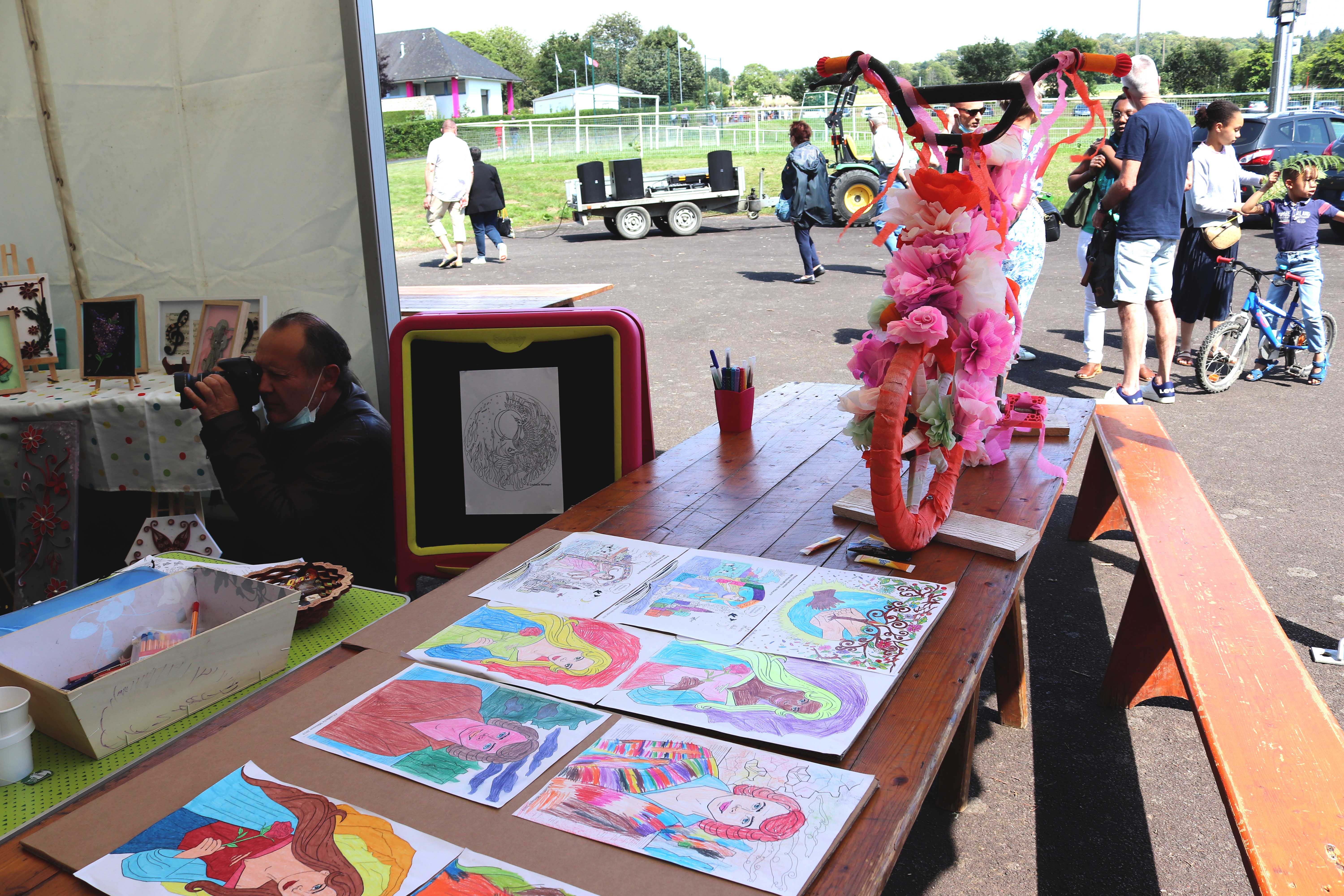 - Nous sommes 14, une équipe très intergénérationnelle de 25 à 72 ans, nous faisons tous des choses différentes. Parmi les membres les plus actifs : Anthony Faucheux l’illustrateur de BD qui a créé notre propre logo « La grenouille » ; la créatrice de poupée « Nikotine Nikoton », qui nous offre des poupées ; Christelle Hory la créatrice de vêtements qui m’a fait la chemise avec le logo, Christine Lemur la secrétaire de l’association et l’artiste du quiling qui m’aide beaucoup et donne toute son énergie ; Dominique, l’institutrice de l’école, elle a un très bon coup de pinceau et elle est toujours très volontaire ; Maryannick Gallais l’artiste-peintre ; Joanna Ostapiuk professeur d’art. Il y a d’autres personnes qui souhaitent rejoindre notre association, et je dois faire la sélection, car chez nous il n’y a pas de jugement, on est très différents mais on se respecte tous, on est prêt à s’investir. On n’a jamais compté les heures passées. Dans notre association nous sommes très souriants, on se donne beaucoup entre nous, c’est calme, c’est respectueux, c’est ce que je voulais.