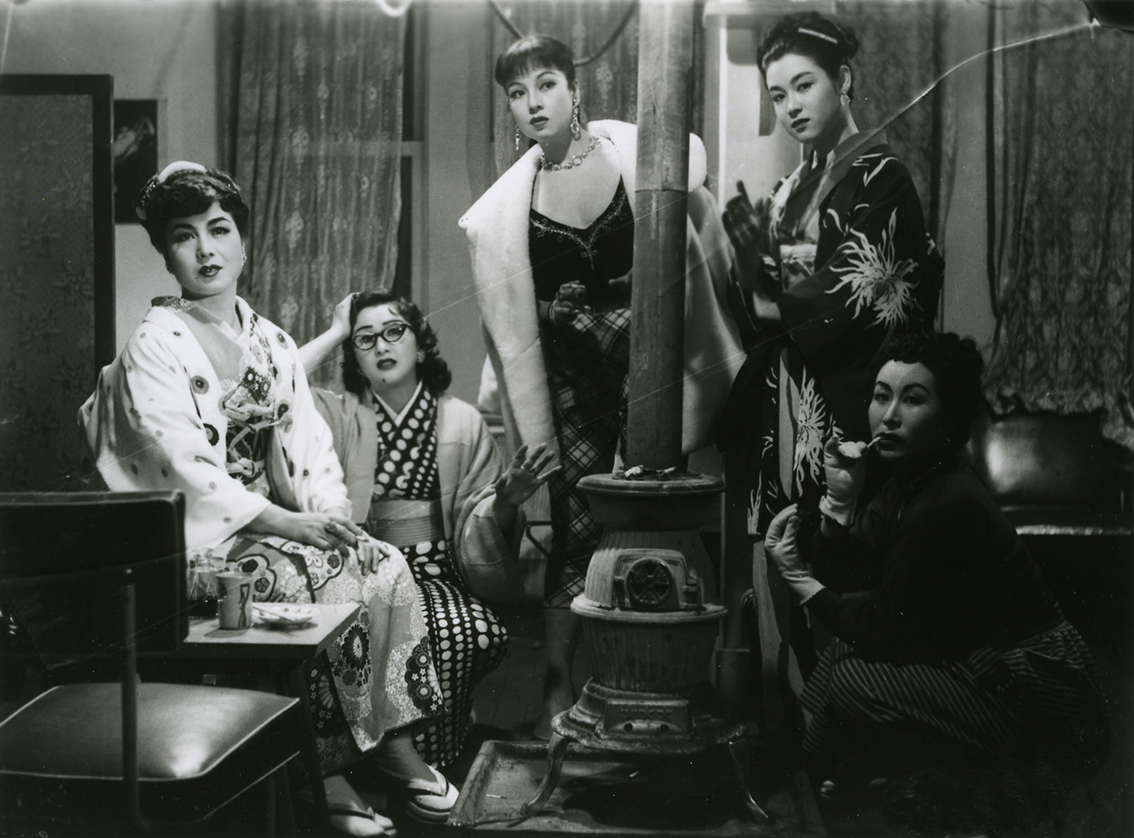 La prostitution au Japon a fait l’objet d’un décret en 1956, indiquant que « nul ne peut se prostituer ni devenir un client », puis d’une loi l’interdisant l’année suivante. Si La rue de la honte n’esquive pas le sujet, il met plutôt au centre de son récit cinq femmes exerçant ce métier. Du reste, Kenji Mizoguchi n’en est pas à son premier fait d’arme en la matière. En 1936 il mettait en scène dans Les sœurs de Gion une geisha qui se rebellait. Si toute sa carrière sera peuplée de figures féminines asservies par les hommes, c’est peut-être dans son dernier film qu’il aborde le sujet le plus frontalement, situant son récit dans une maison close. Il adapte pour ce faire un roman de l’écrivaine japonaise Yoshiko Shibaki avec l’aide du scénariste Masashige Narusawa. Ses interprètes incluent Machiko Kyō, qui vient de tourner dans Rashōmon et Les contes de la lune vague après la pluie, mais aussi Ayako Wakao, Michiyo Kogure et Kumeko Urabe, dont les carrières croiseront également Akira Kurosawa et Yasujirō Ozu.