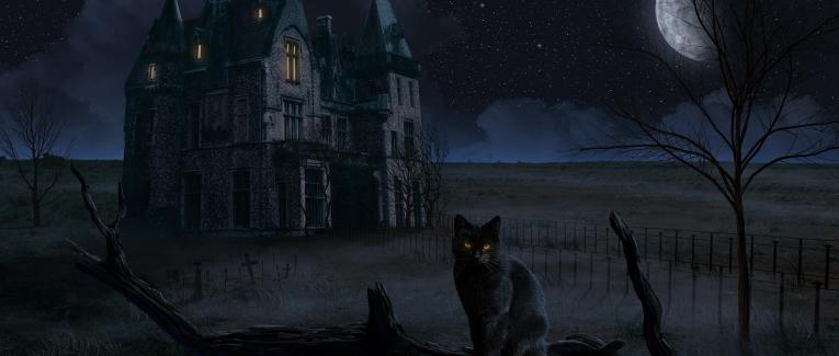 D'après Image par gene1970 de Pixabay : Halloween Chat Noir Maison Hantée - Photo gratuite sur Pixabay