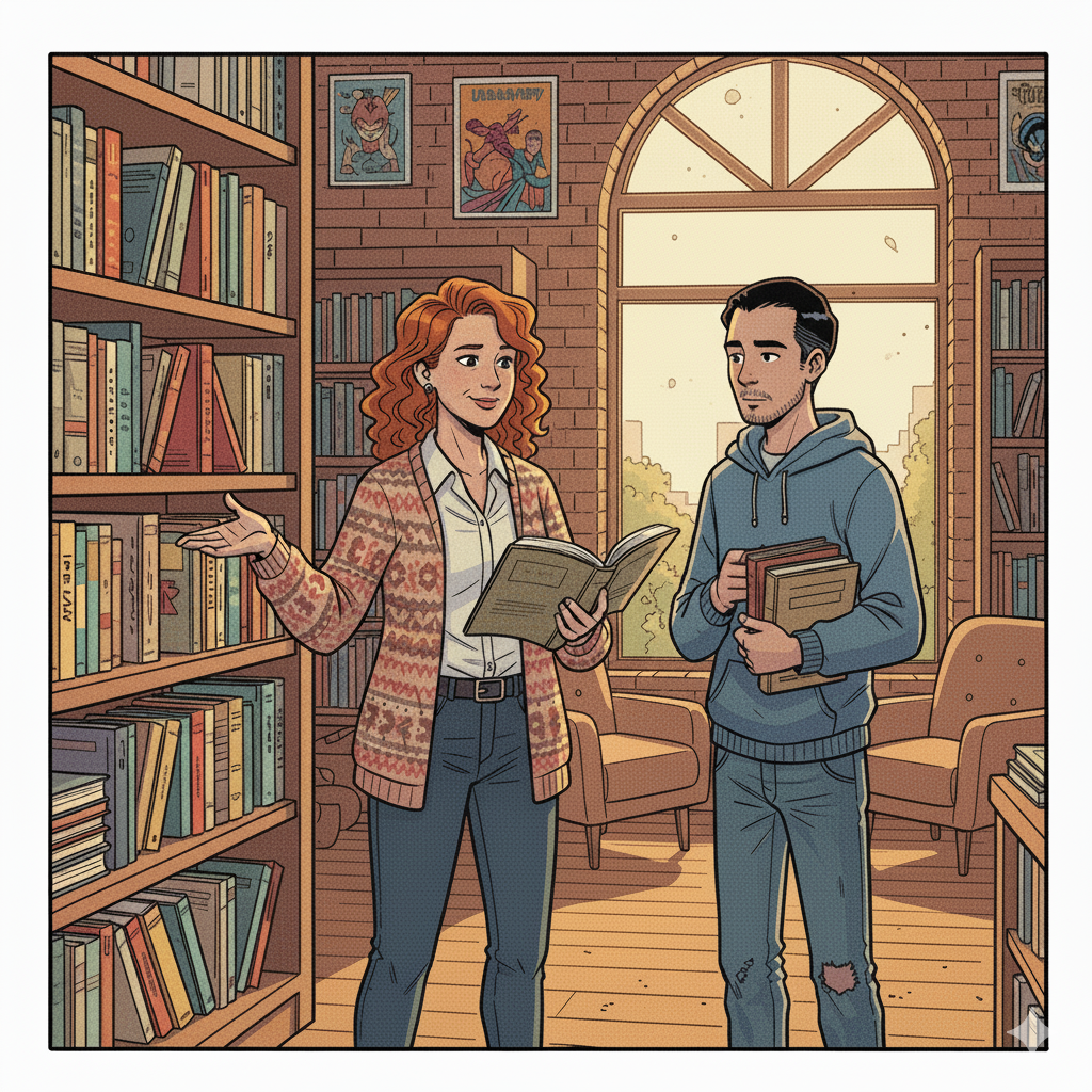 La libraire tend son bras vers un rayonnage, sans même y regarder, et attrape ce qui lui tombe sous la main.