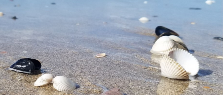 Sur la plage ensoleillé, un patchwork de coquillages.
