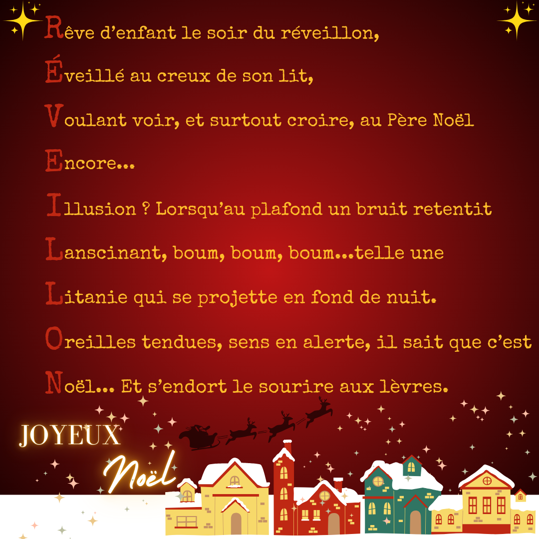Petit acrostiche de Noël évoquant la magie dans le regard et le cœur des enfants.